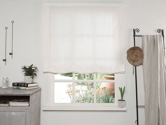 Washed White Linen Roman Blind- Hand Finished- Made to Measure Roman Blind- Bespoke Roman Blind- Lin...