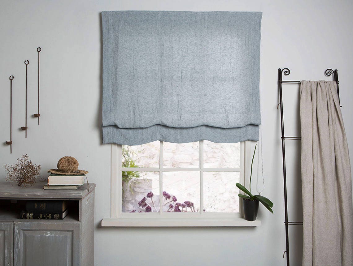 Washed Grey blue Linen Roman Blind- Hand Finished- Made to Measure Roman Blind- Bespoke Roman Blind-...