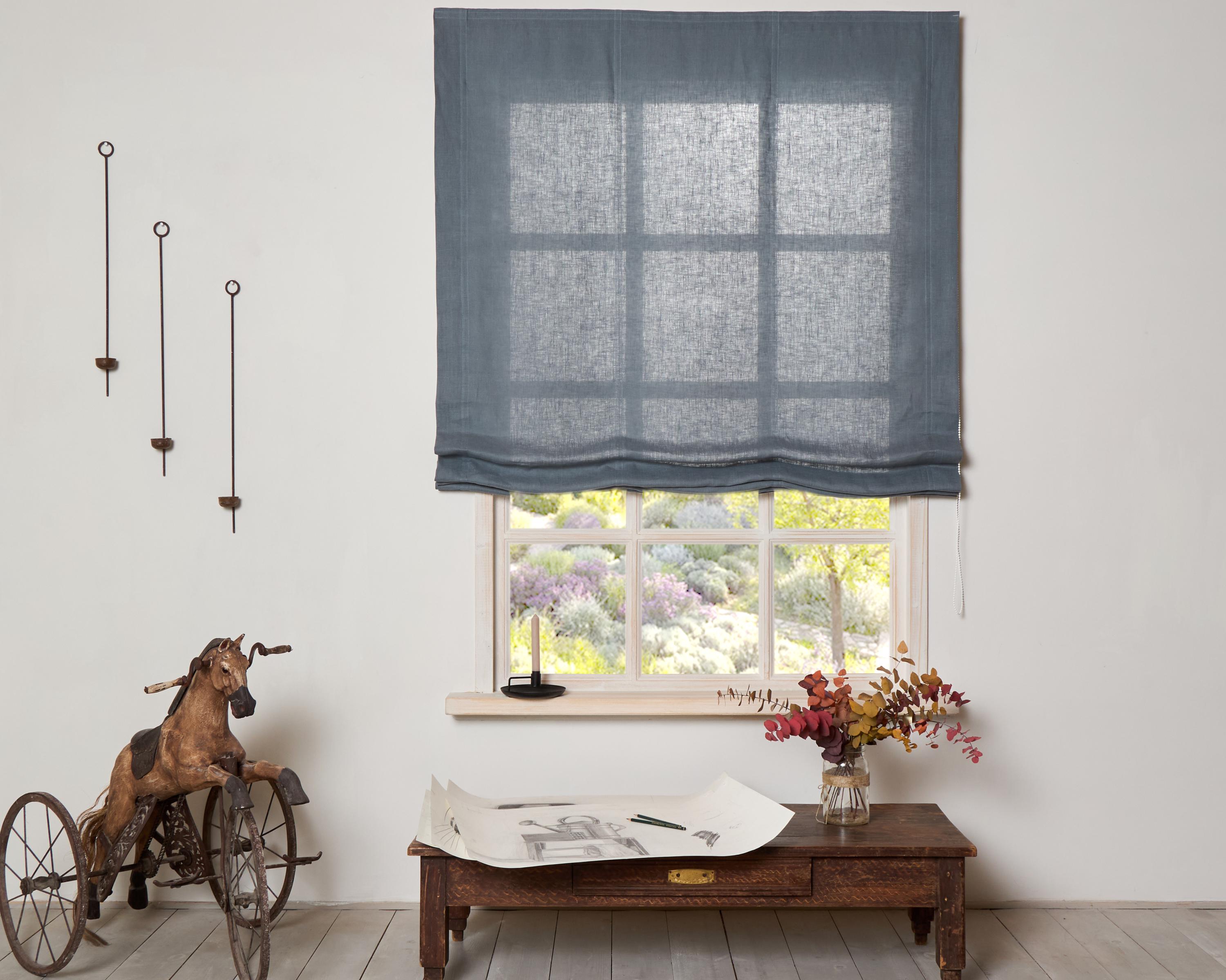 Linen Roman Blind - Linen Roman shade-Roman Blind in Grey blue colo...
