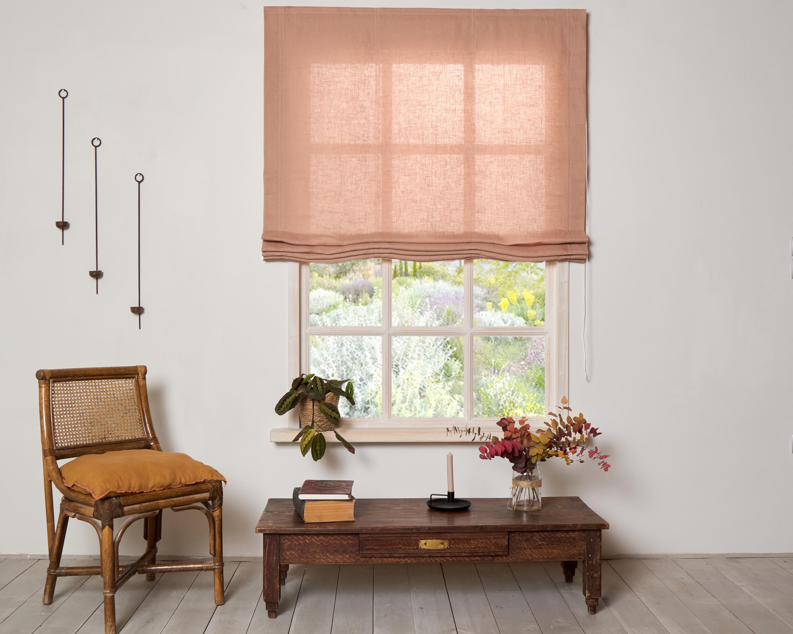 This Washed Dusty peach color Linen Roman Blind will decorate simply and elegant your window! A beau...