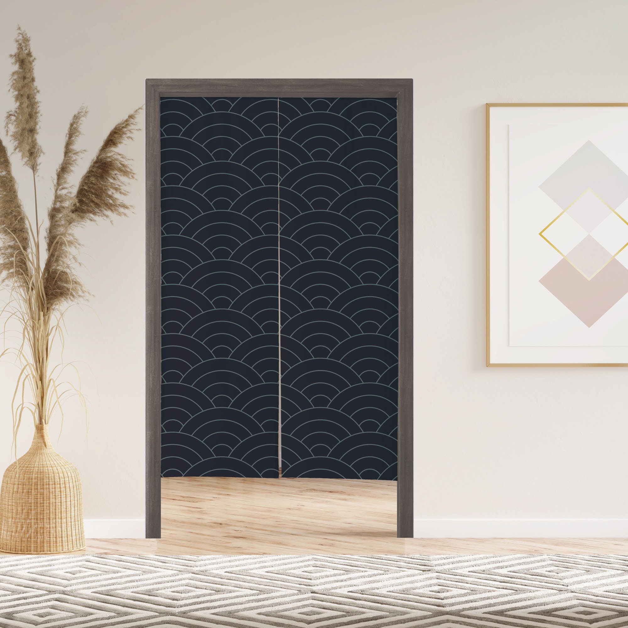 Japanese Waves Noren Door Curtain with Velcro/Grommet/Sleeve, Japan...
