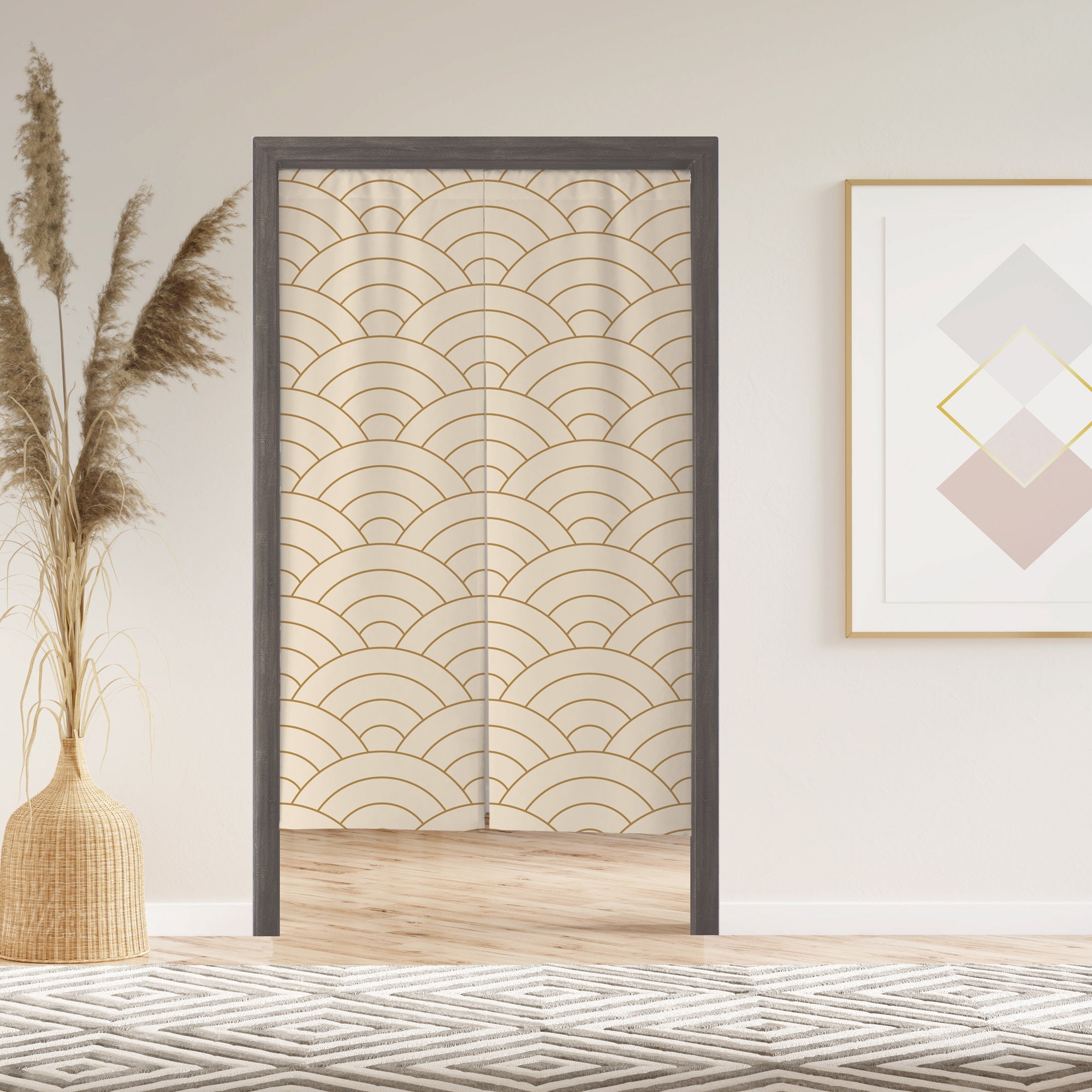 Bamboo Noren Door Curtain with Velcro, Japanese Doorway Curtain for...