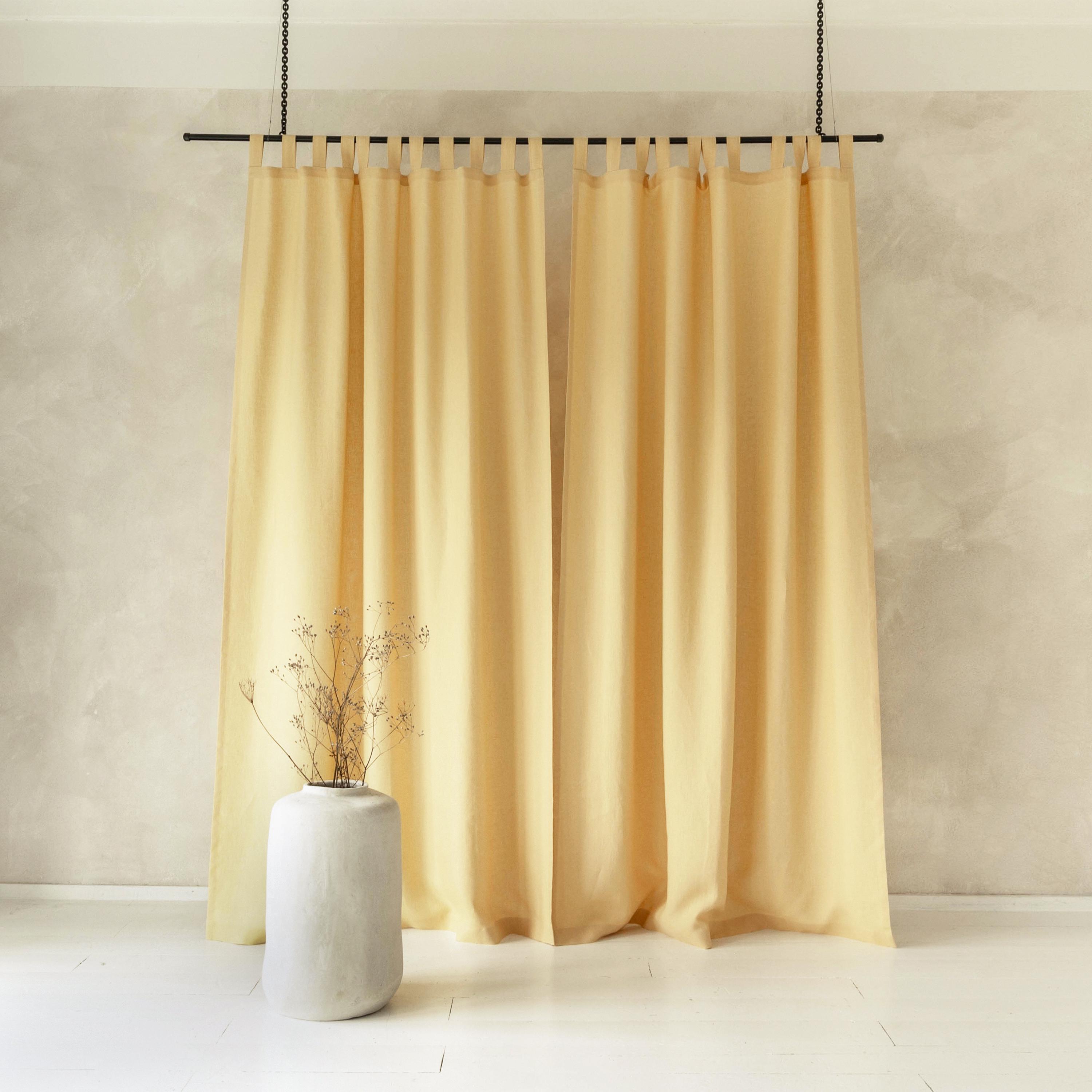 Linen Tab Top Curtain Panels, Butter Yellow Curtains with Tabs, Nat...