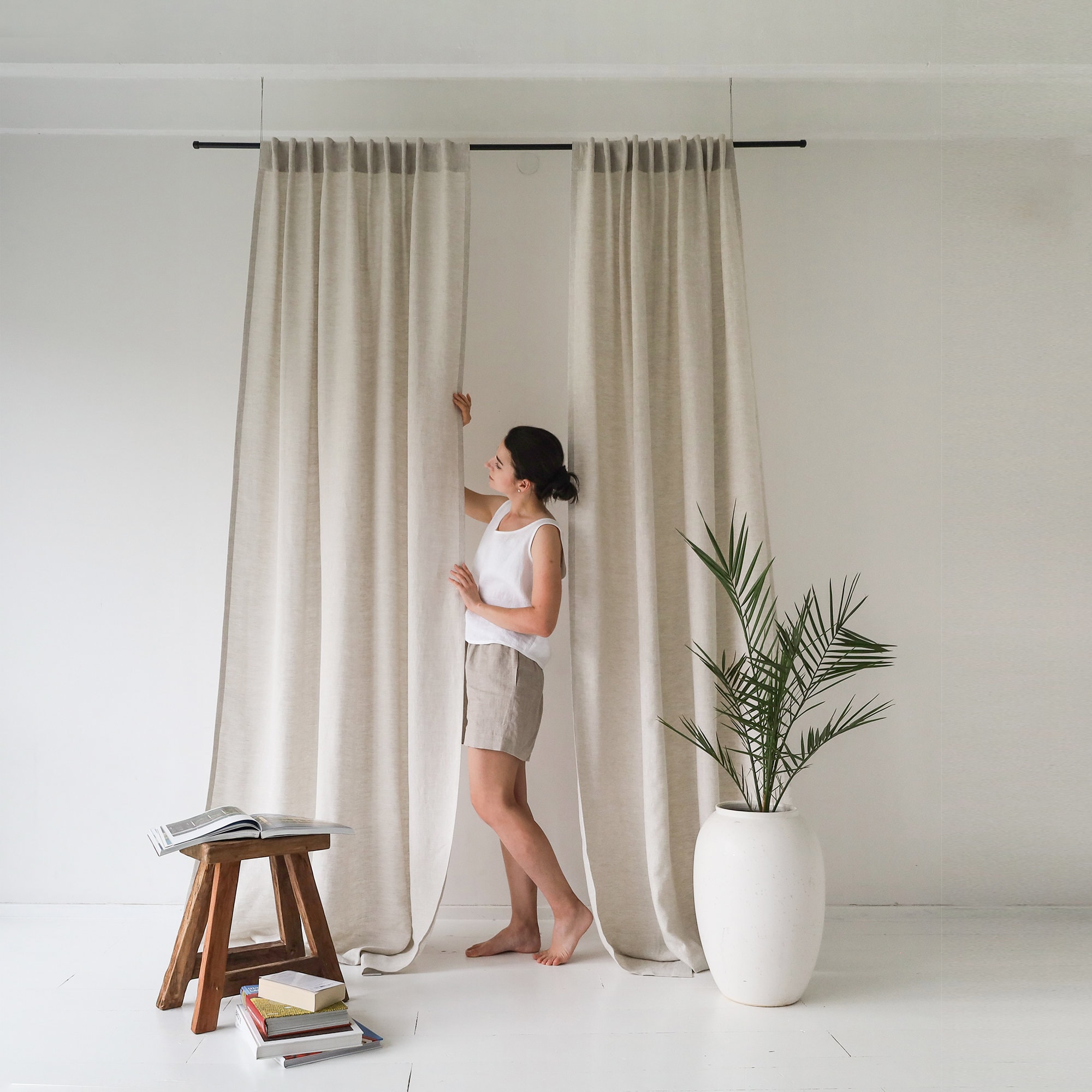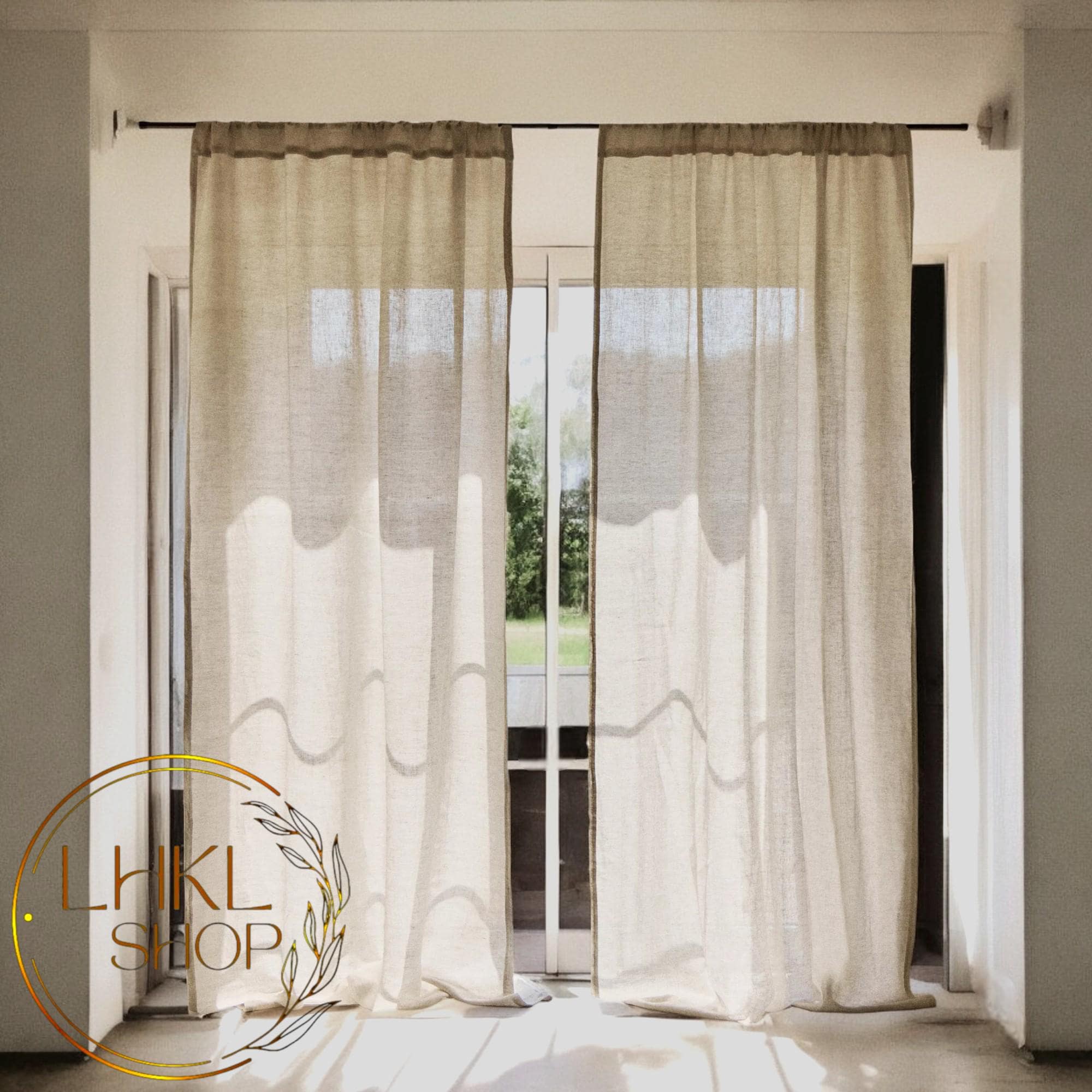 "Handcrafted natural linen tab top curtains that transform your space with timeless style. Choo...