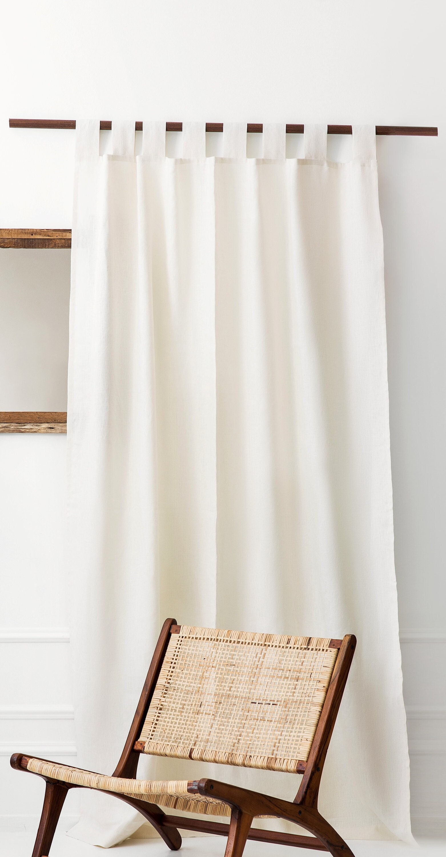 Linen drape with tabs, natural linen curtain, tab top curtain panel...