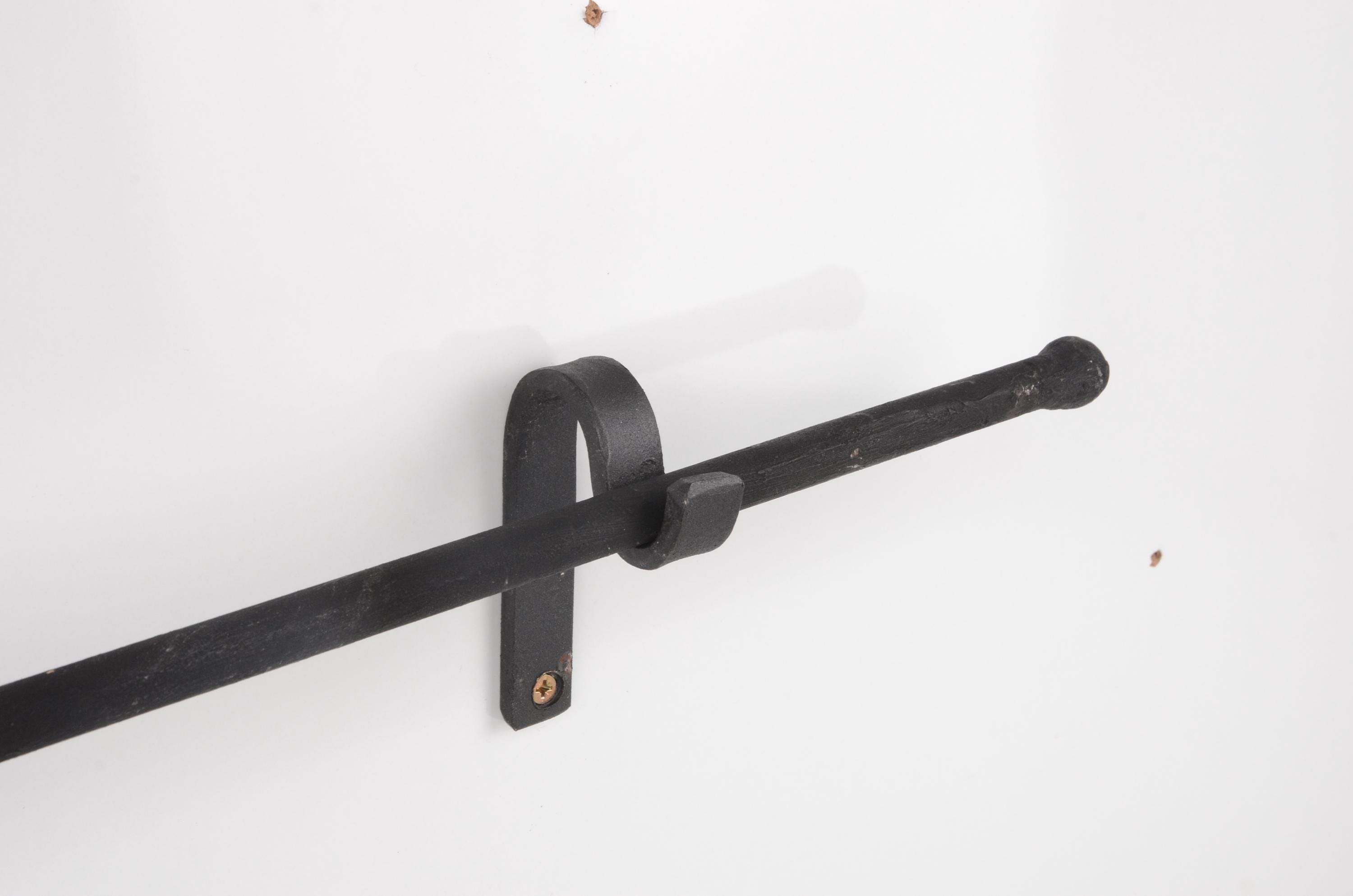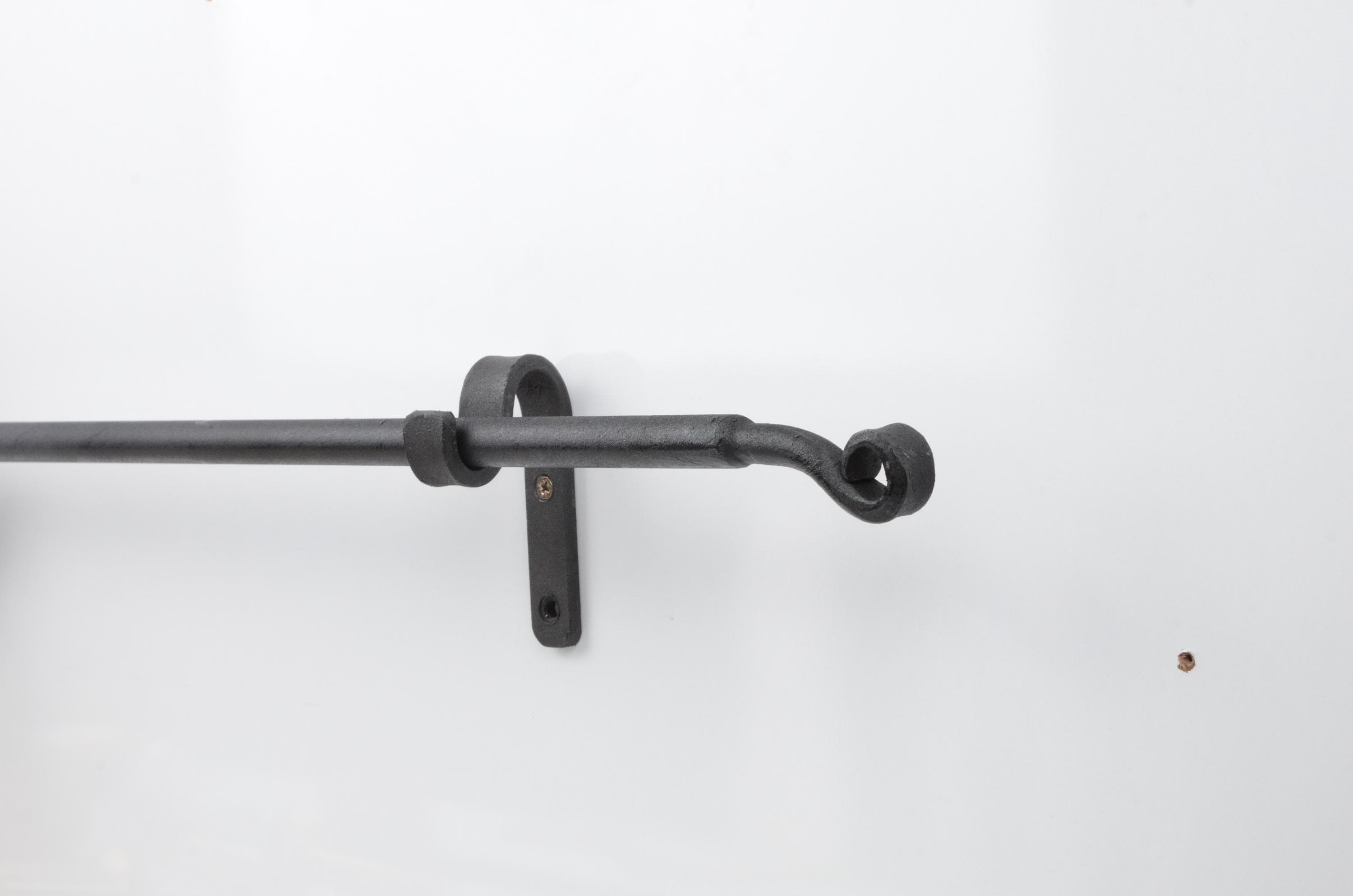 "Wrought Iron Curtain Rod With Wall Supports, Wide Curtain Rods, Black Hand-Forged Curtain Pole...