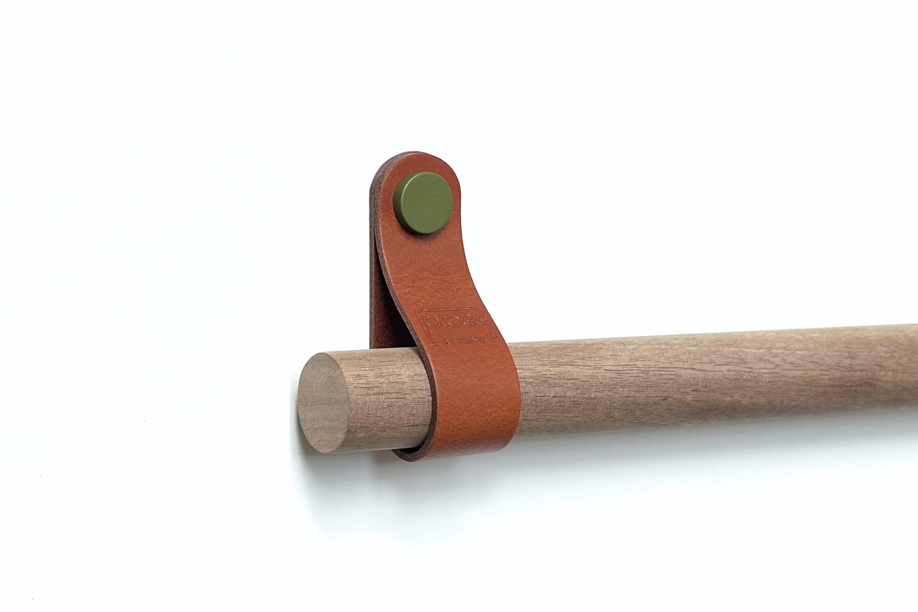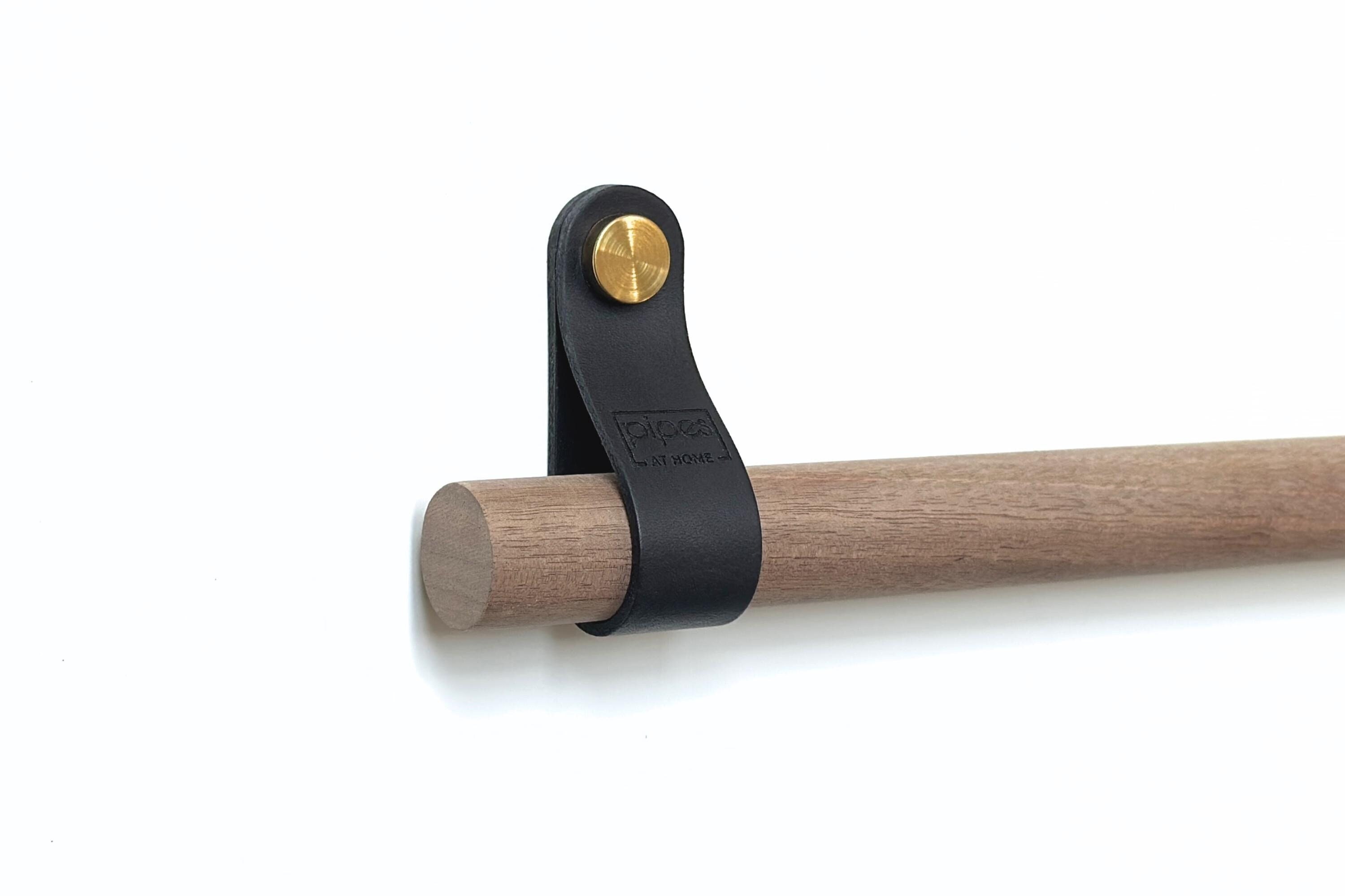 "Rod holder leather series \"Arc\" wall mount curtai...