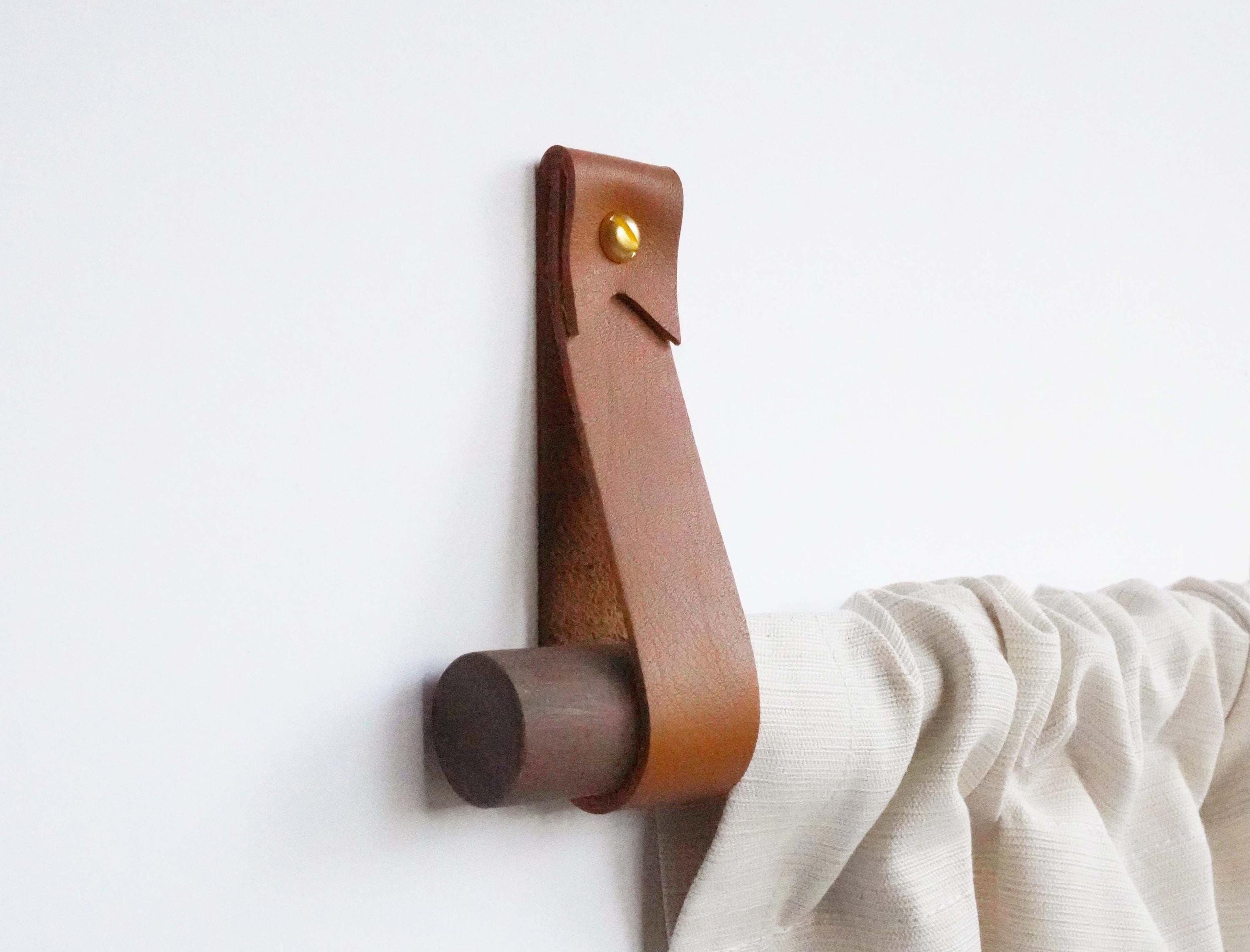 Leather Curtain Rod Bracket with brass curtain rod holder wall hook...