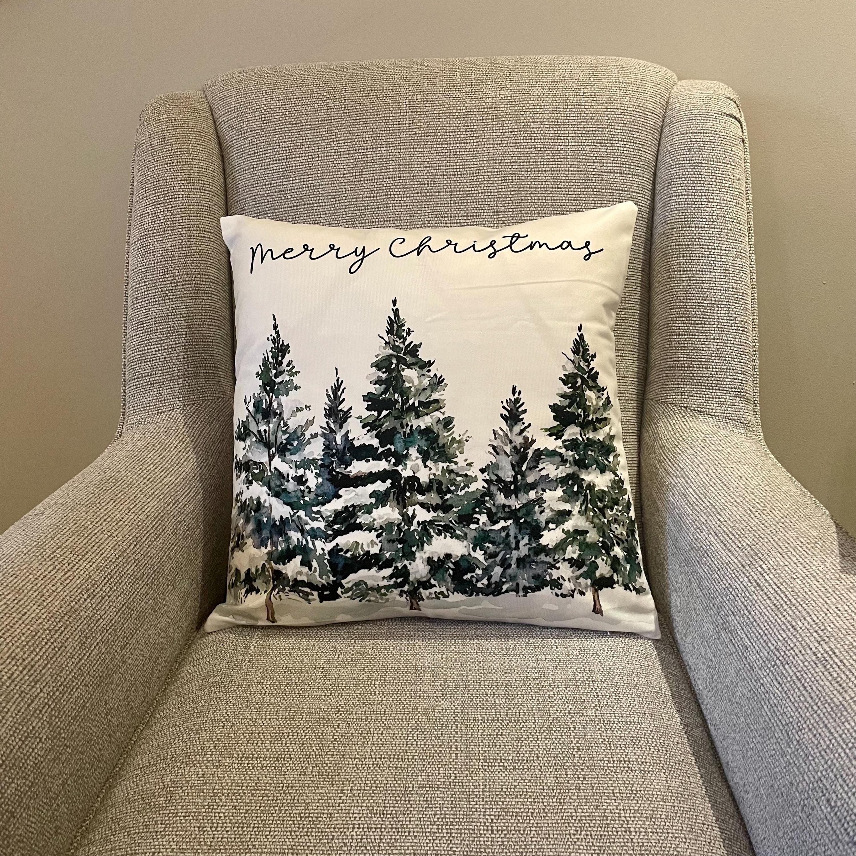 Add a scandi/nordic vibe to your Christmas decor with this pretty pine forest cushion cover with mer...