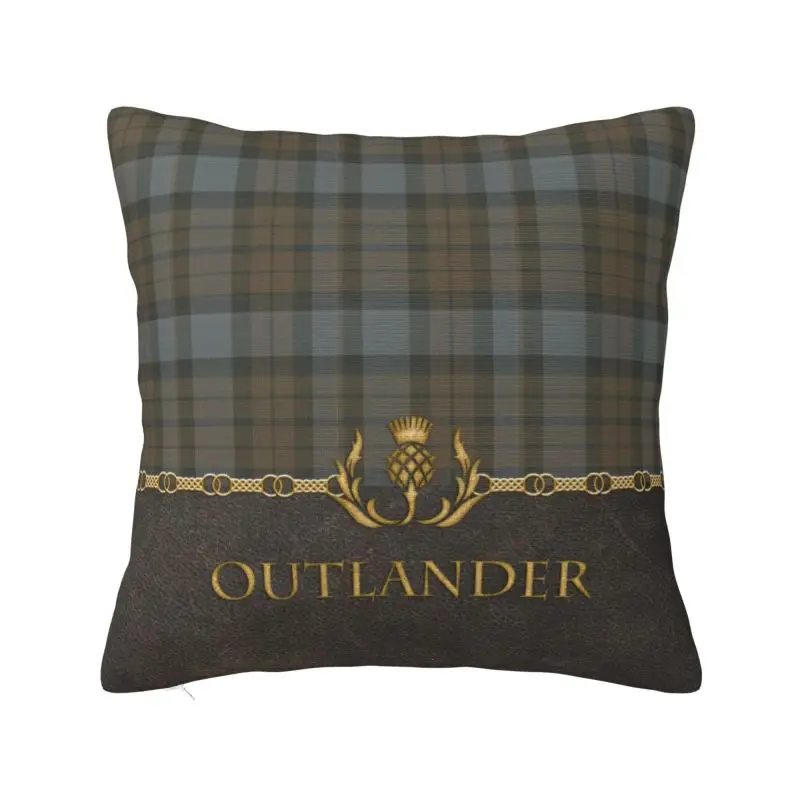 Custom Leather And Tartan Outlander Pattern Cushion Cover 40x40cm Modern Plaid Check Texture Soft Cu...
