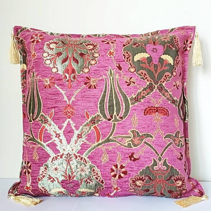 boho pink pillow, pink kilim cushion,kilim cushion pink, tulip flor...