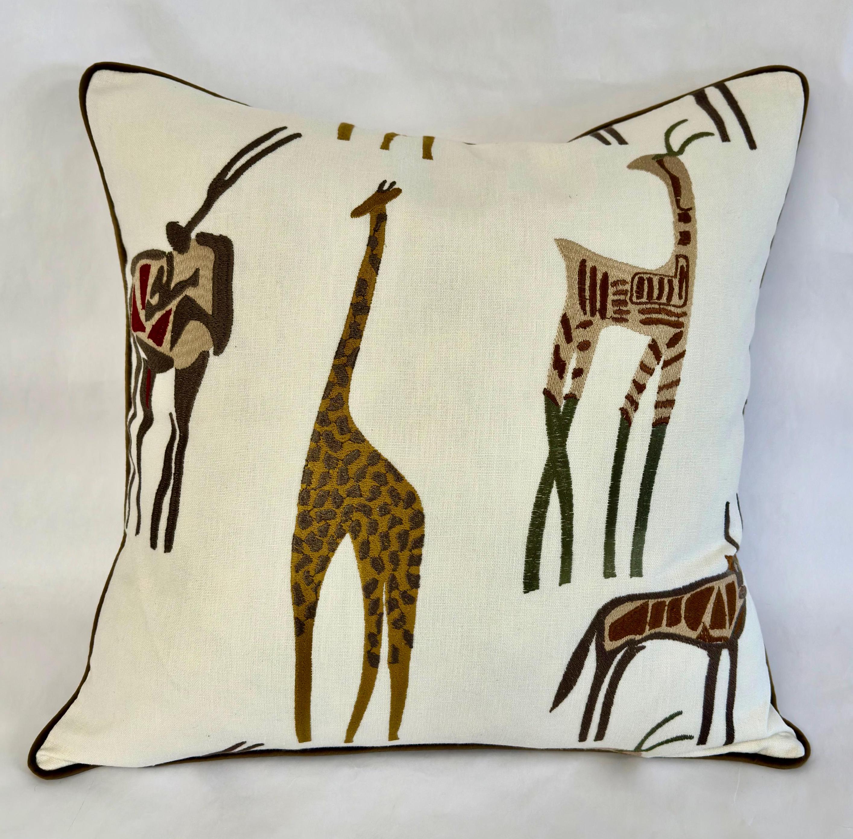 Embroidered cotton pillow cover-Safari pillow-Embroidered animal pi...