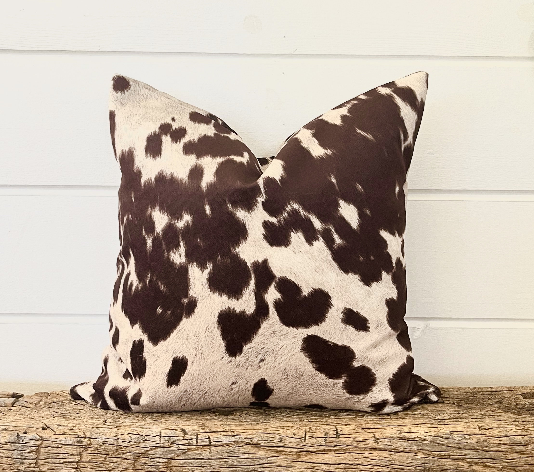 Chocolate brown Velvet Cow print pillow cover, Brown Cow hide cushi...
