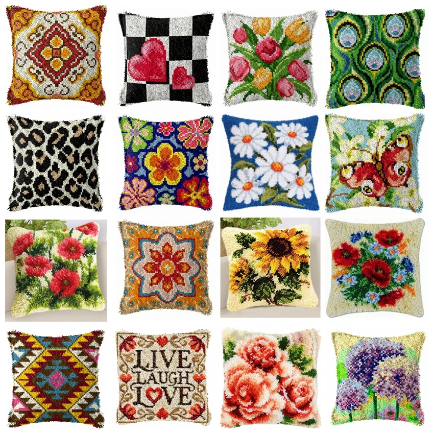 Flower Series Latch Hook Pillow Kit Mandala Cross Stitch Smyrna Buttons Knot Tulip Cushion Package N...