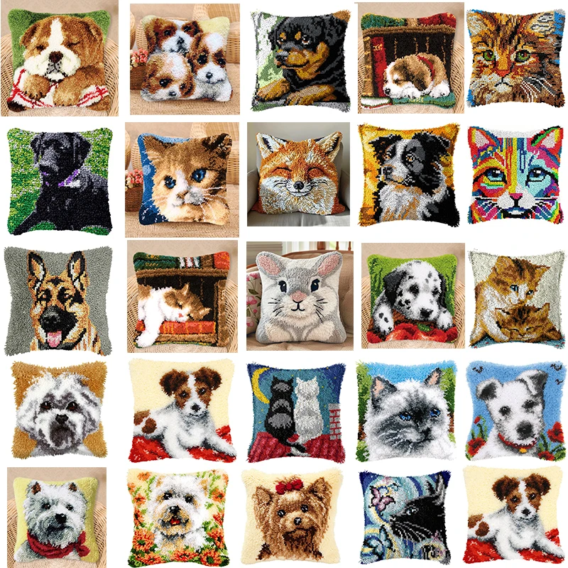Latch Hook kit Cross Stitch Pillows With Cartoon Pattern Cute Cats Dogs For needlework Needlework An...