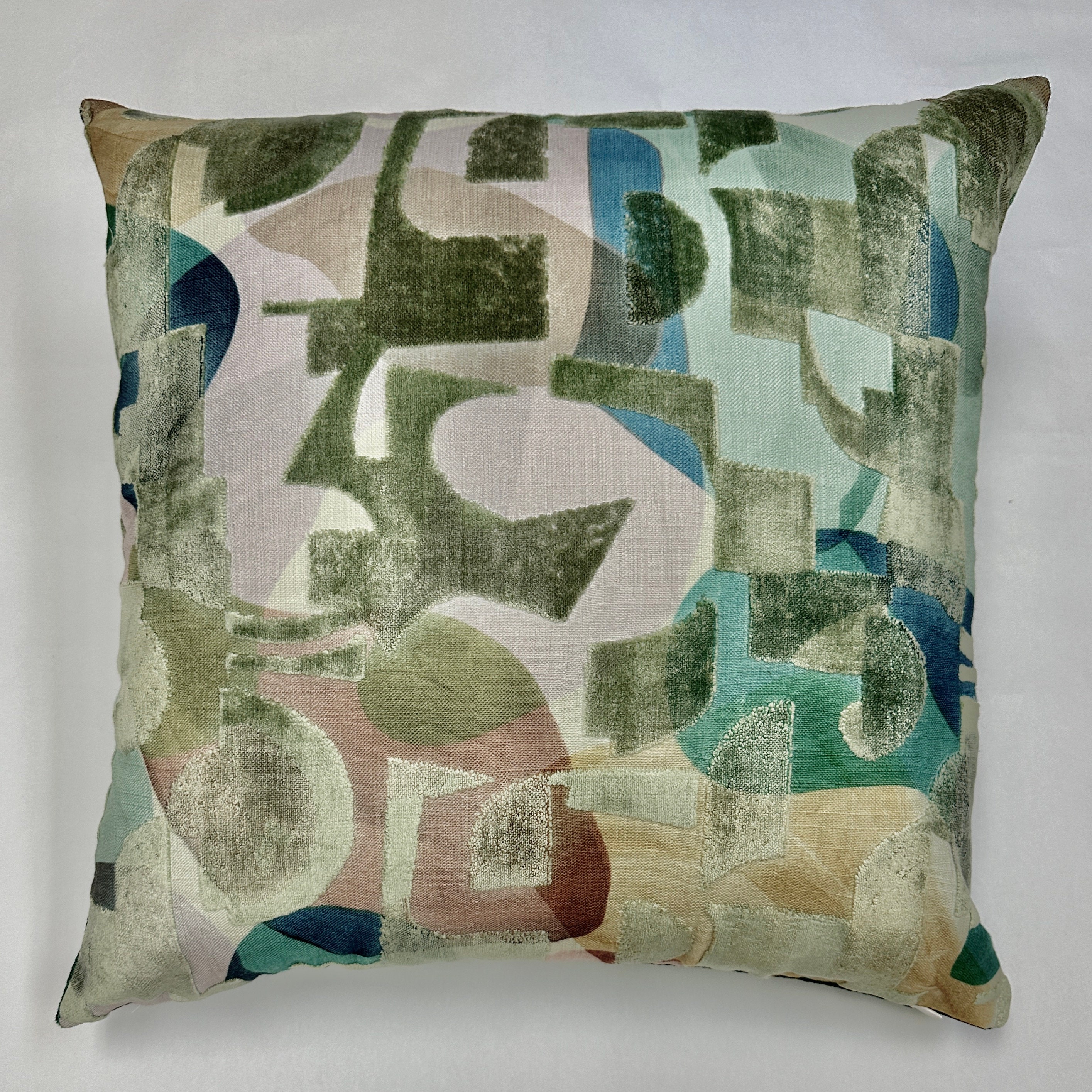 "cut velvet/jacquard velvet over print pillow front. Back is solid teal velvet Please request a...