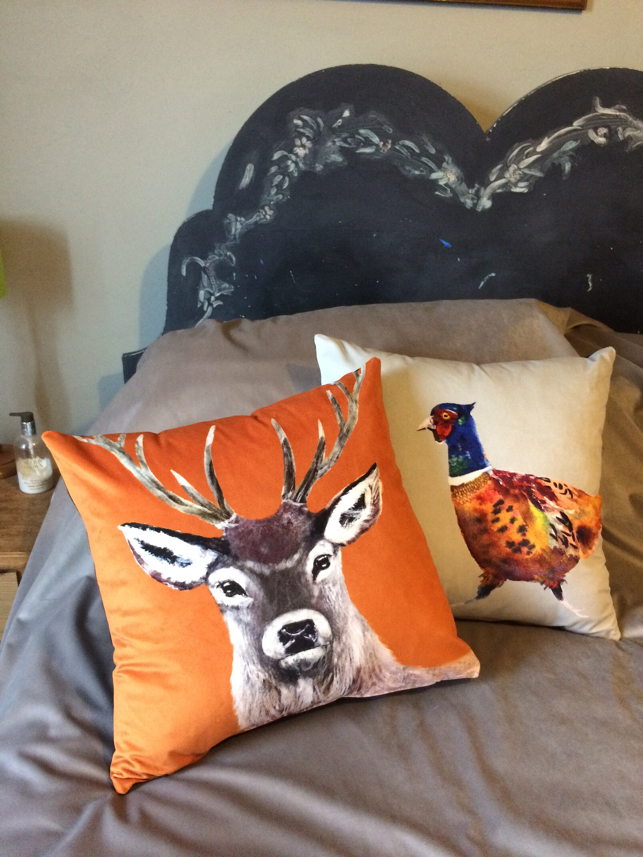 "Gorgeous tactile polyester velvet cushion cover - with black cotton back. 'You looking at me?'...