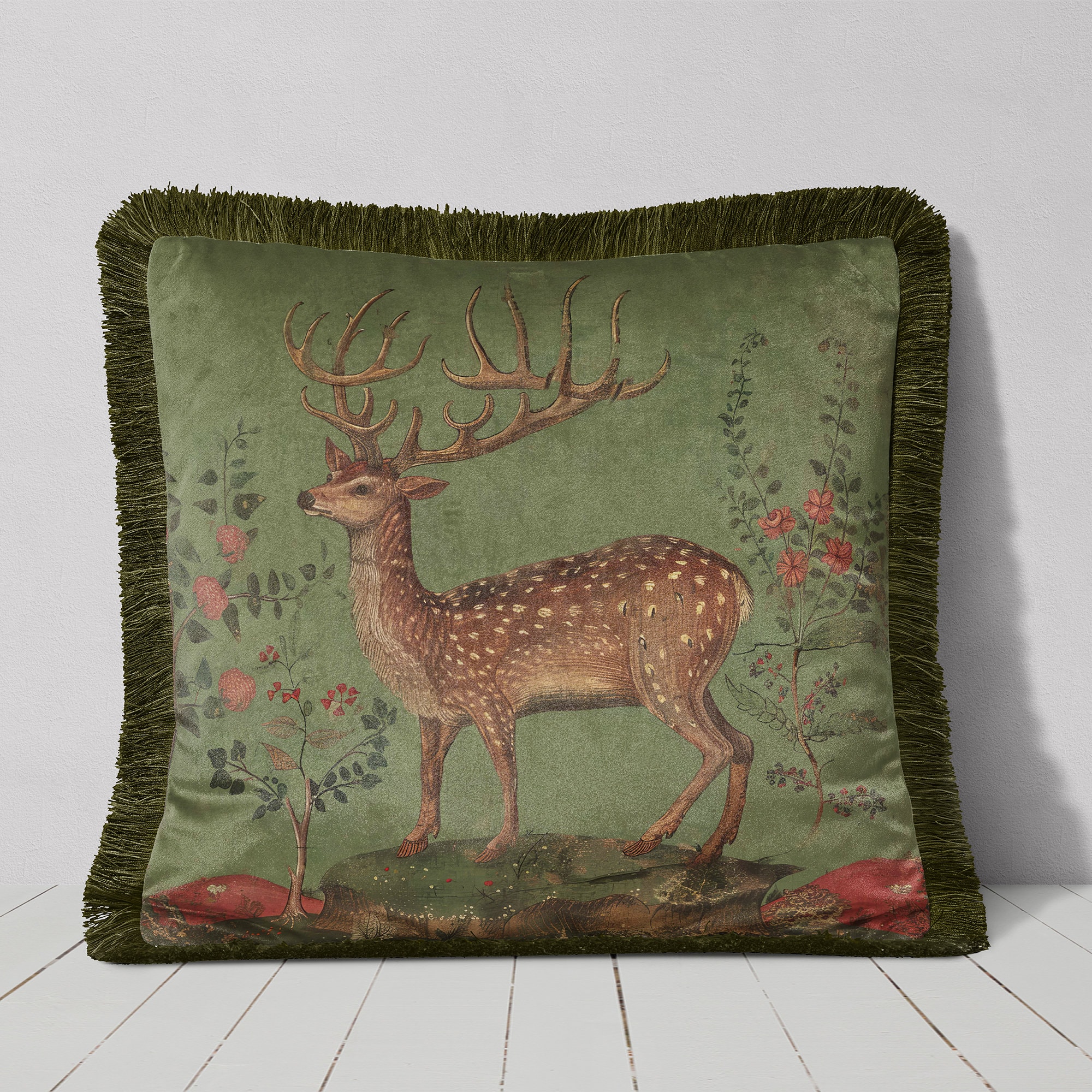 Vintage Style Floral Deer Luxury Velvet Pillow Cover With Fringe, S...
