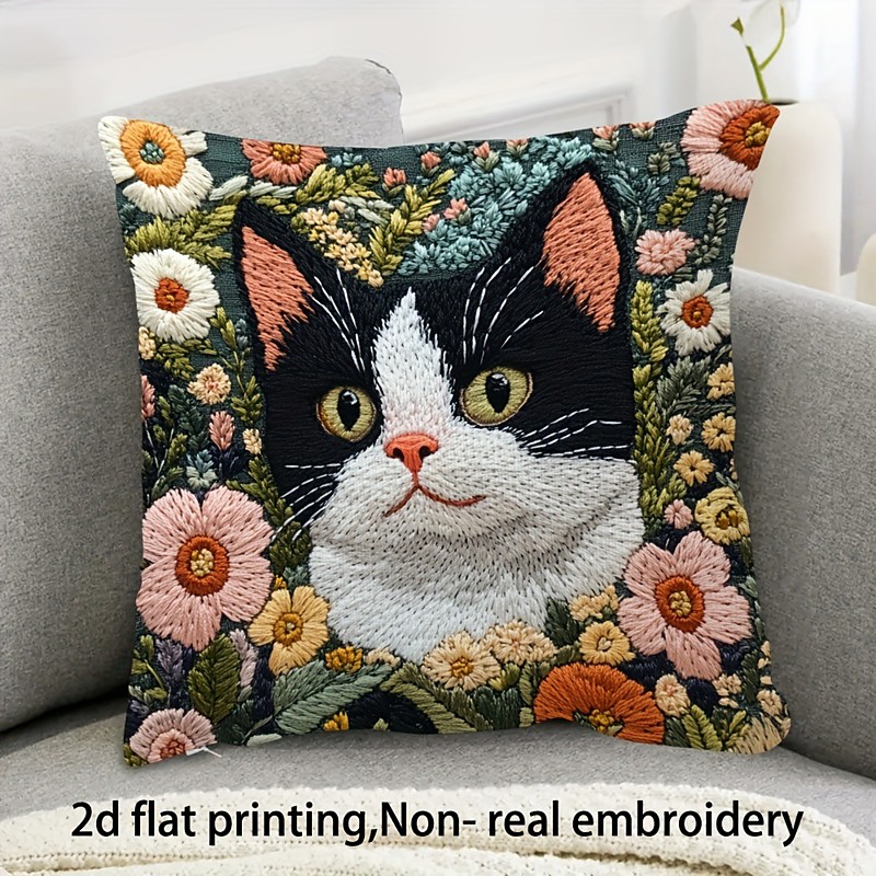 Floral Pattern Pillow Cover 2D Flat Print Soft Comfortable Cushion ...