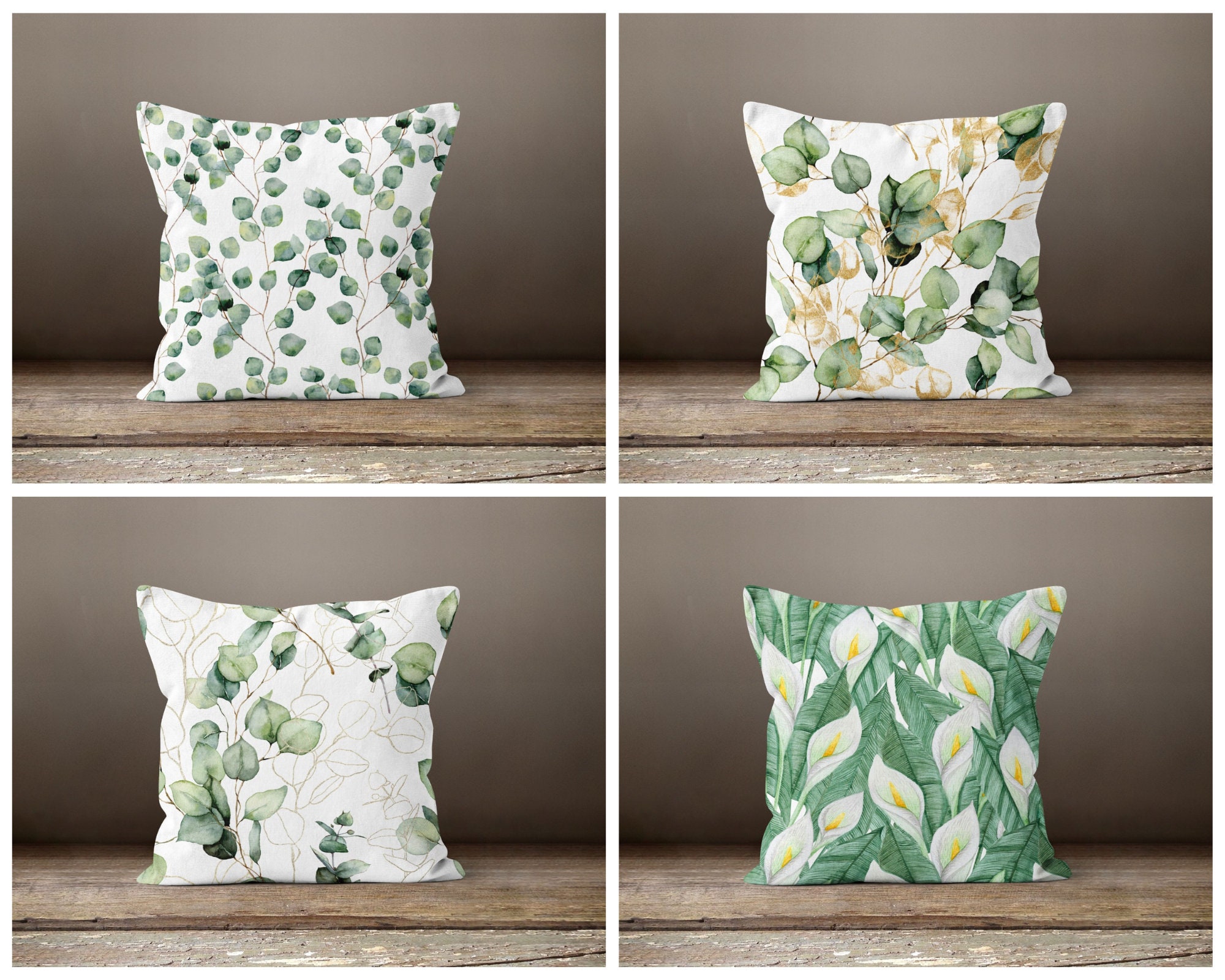 Eucalyptus Cushion Cover|Green Flower pillow case|Modern leaves Cushion|Garden throw pillow cover|Gi...