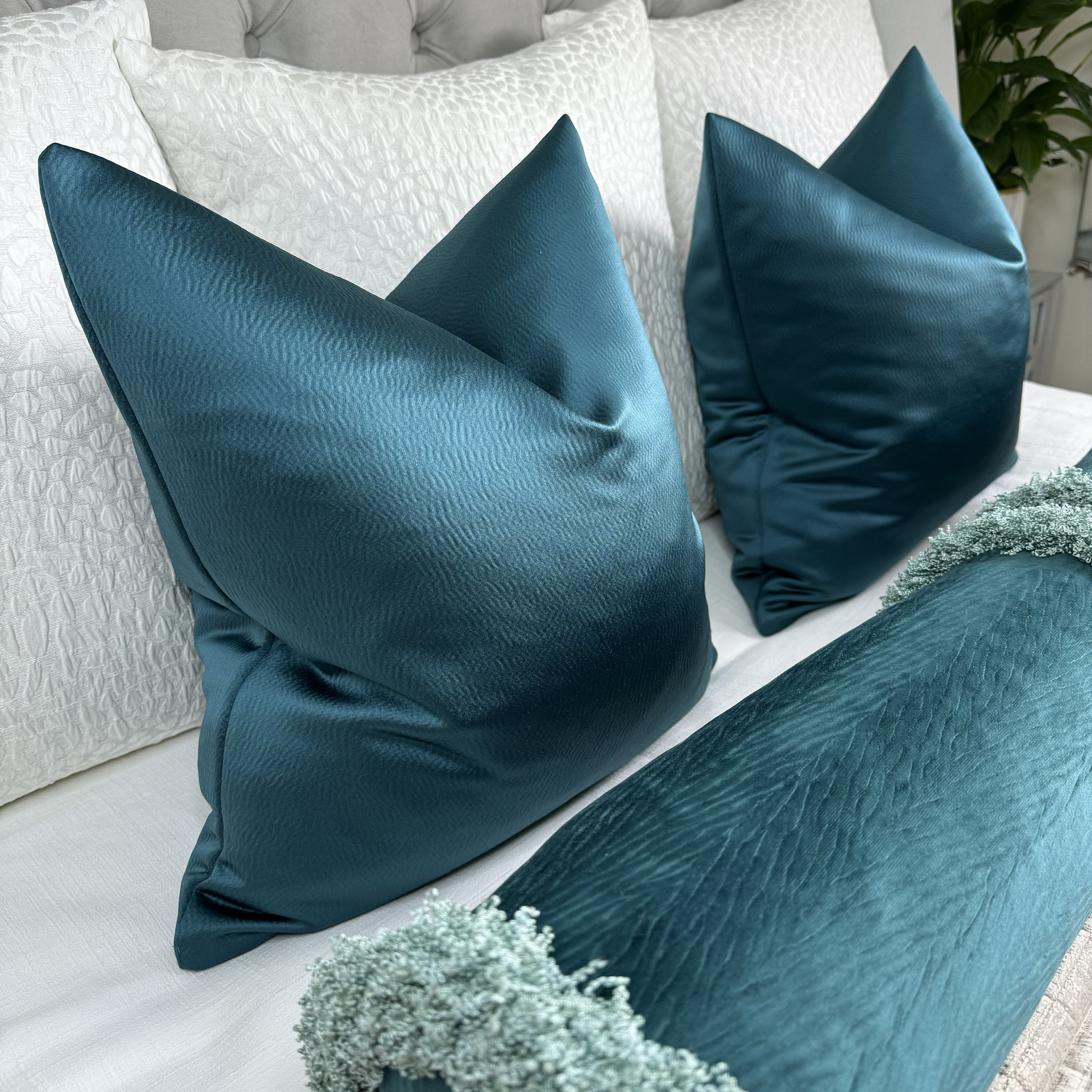 Scatter teal cushion cover, textured sateen pillow cover, luxury te...