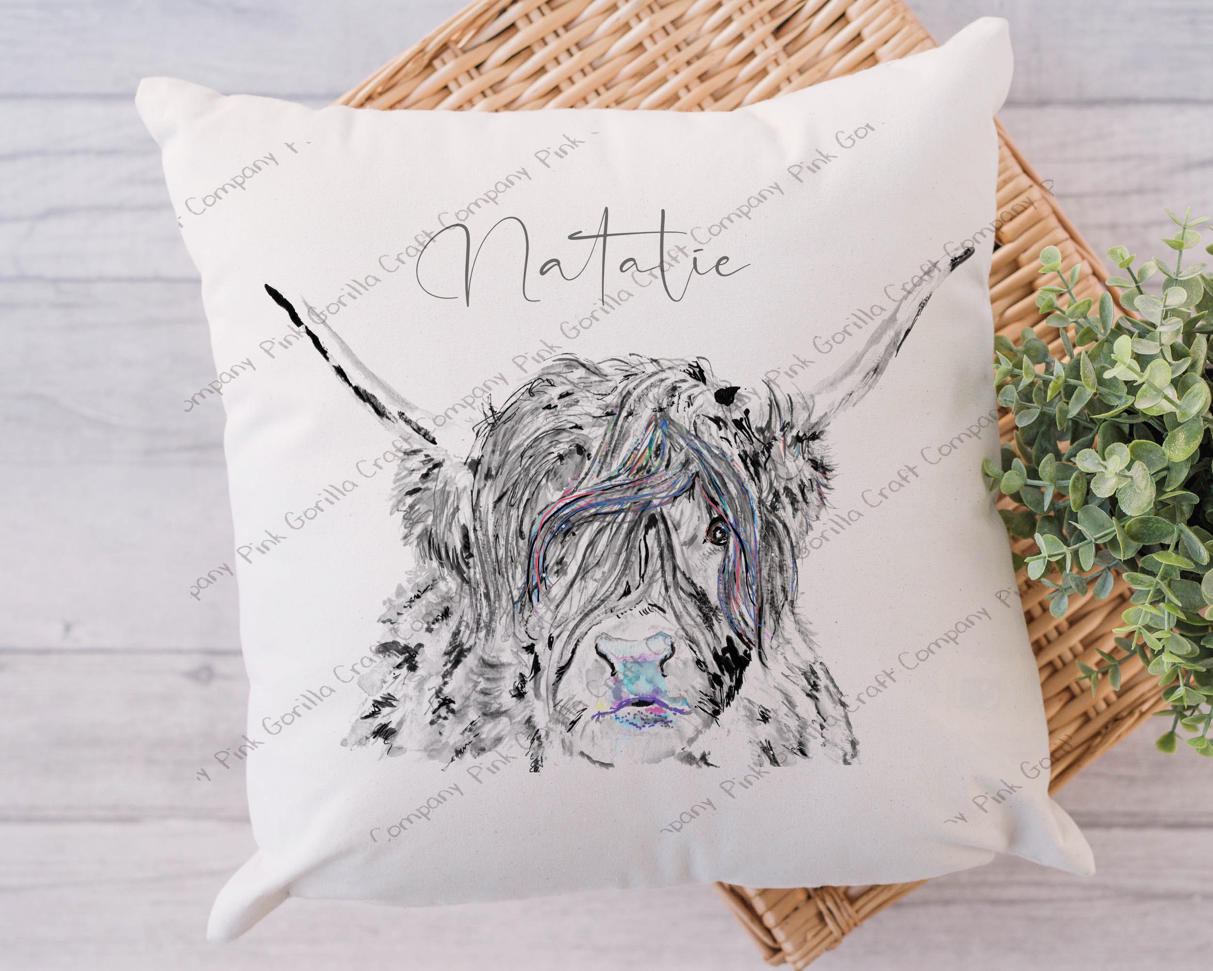 Highland cow cushion, personalised Highland cow gift, Highland cow ...