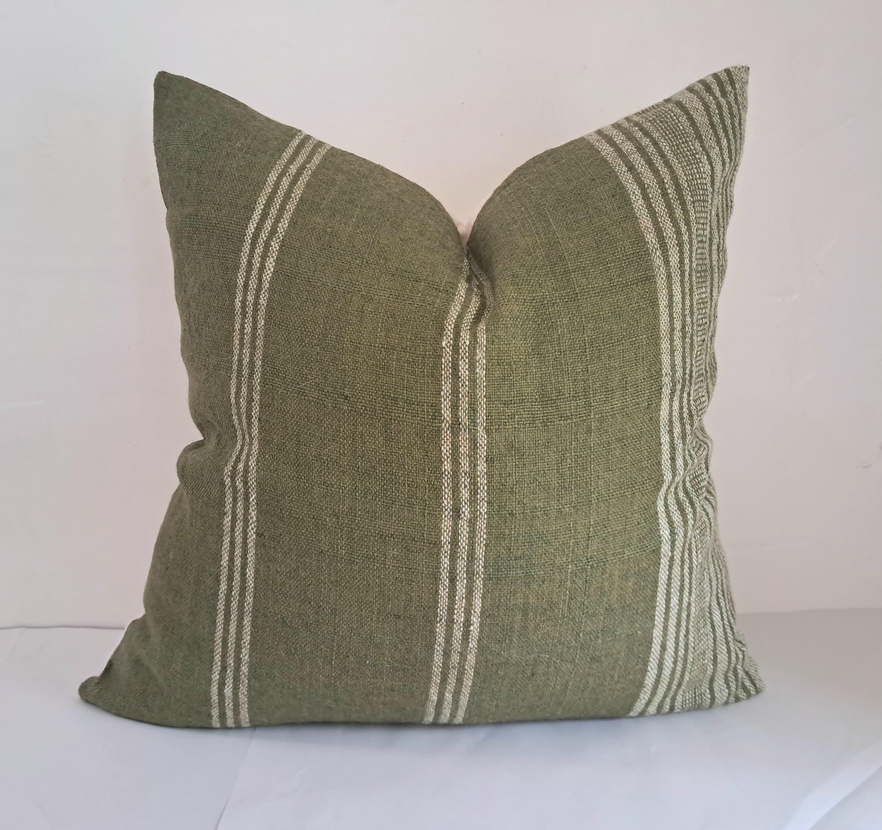 Light Sage green and cream white Stripes Indian wool Pillow Cover from Krinto This Lumbar light gree...
