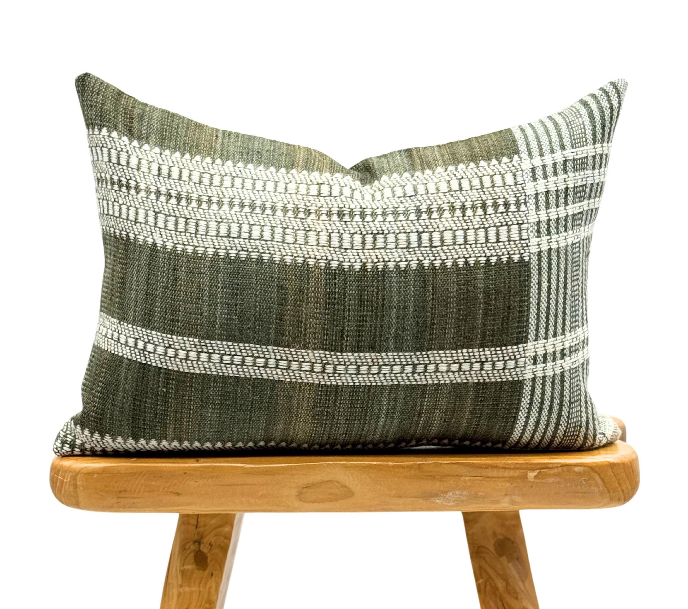 Lumbar Pillow Cover, Indian Wool Pillow Cover, Green Wool Pillow, L...