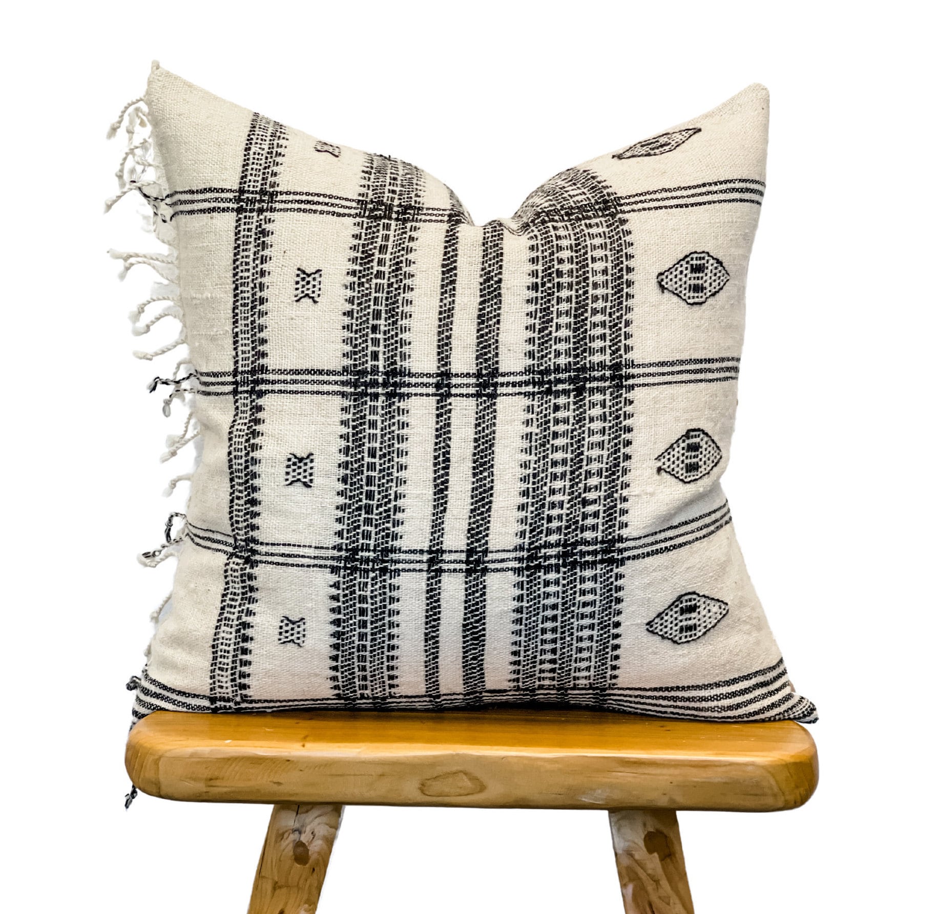 White and black Indian wool Pillow Cover from Krinto Vintage Indian wool white and black wool pillow...