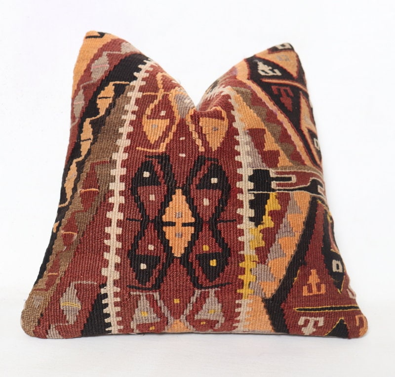 "16x16\" Turkish Kilim Pillow, Vintage Kilim Pillow, Kilim Pillow, Home Decor, Pillow Cove...