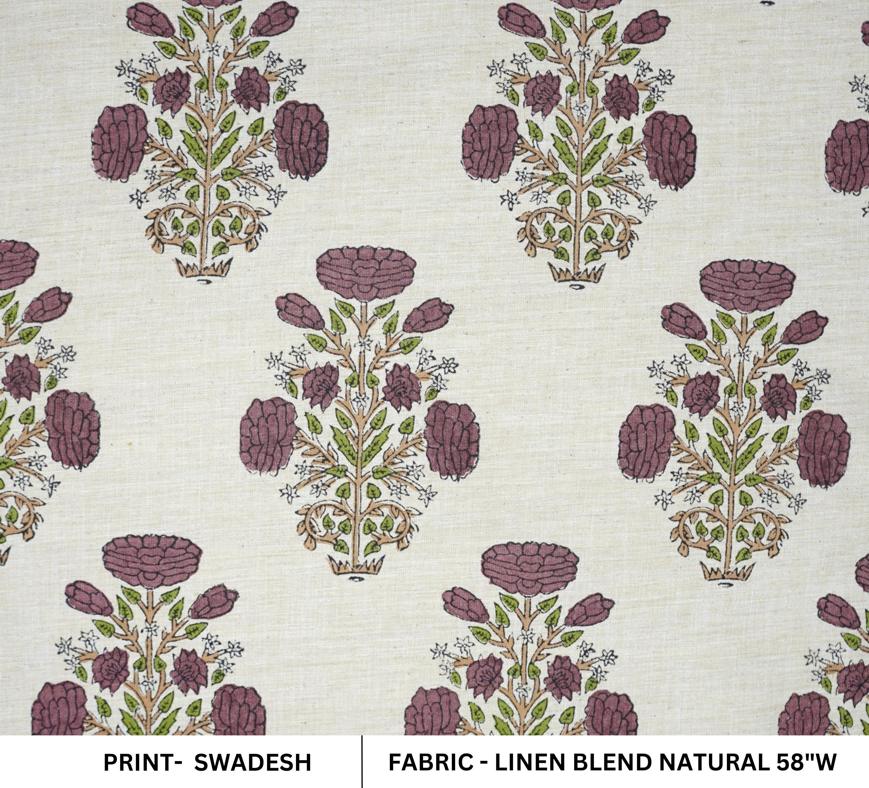 "Block Print Linen Blend Fabric Natural 58\" Wind Indian ...