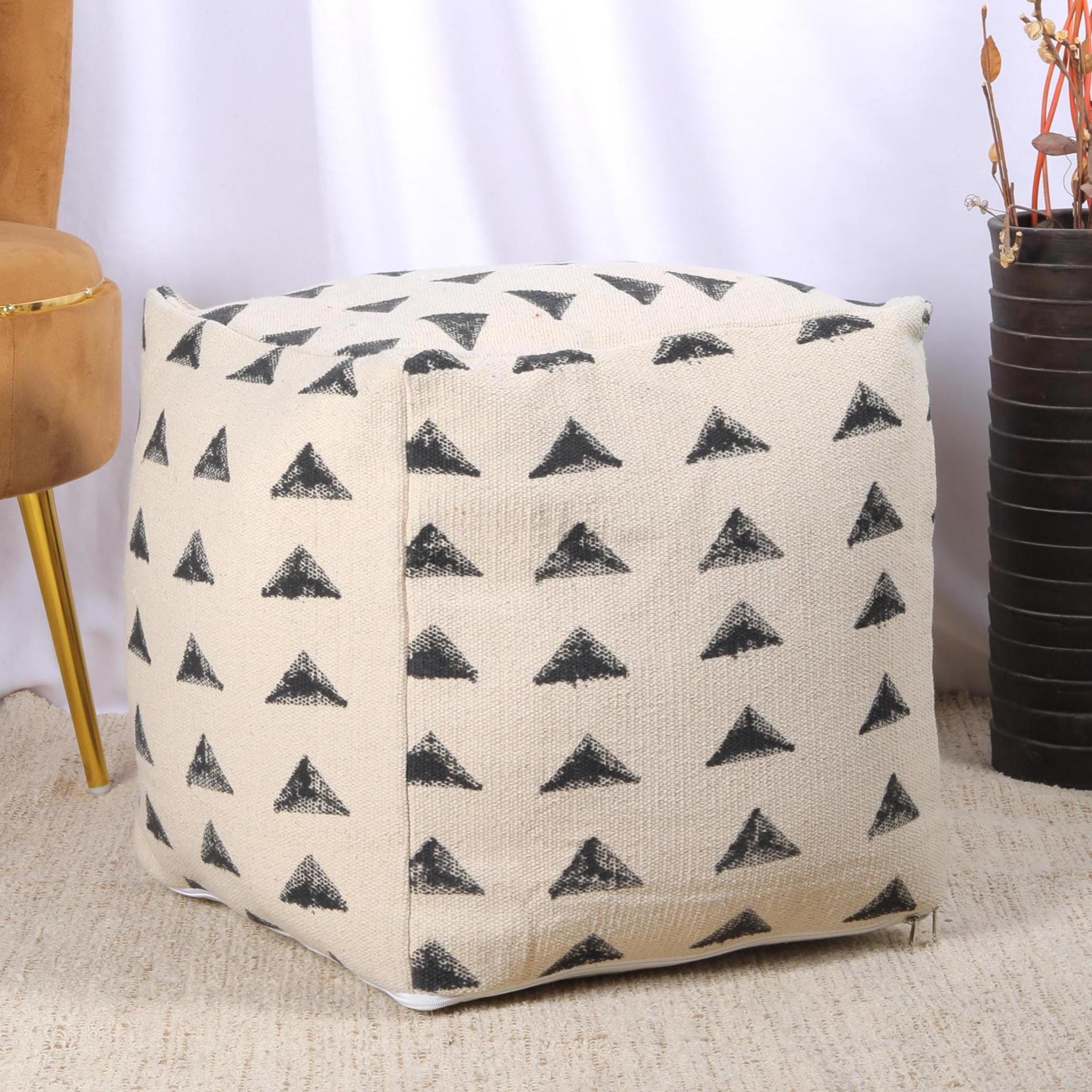 Ivory Mudcloth Pouf Cover: Hand-Block Printed Cotton Ottoman