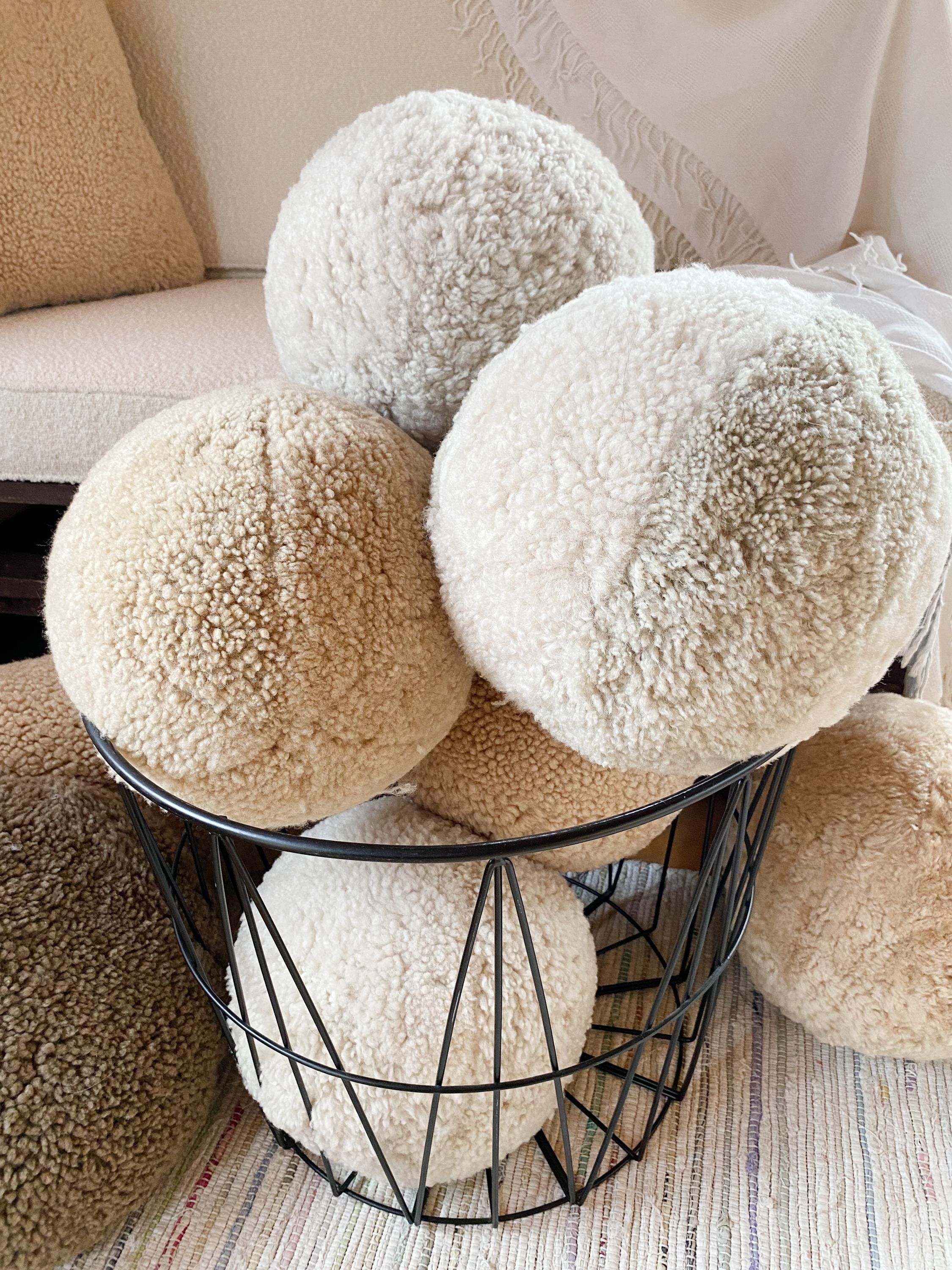 Curly Merino Sheepskin Ball Pillow - Boucle Throw Pillow - Sheepski...