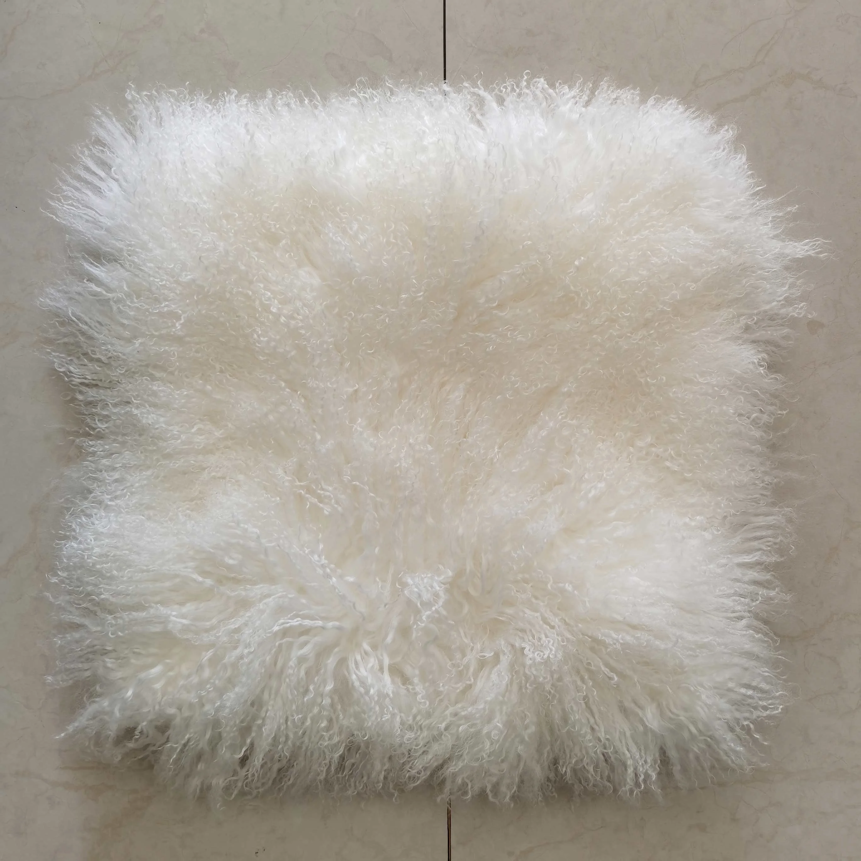 Luxury Tibetan Sheepskin Fur Throw Pillow Soft Plush Shaggy Square ...