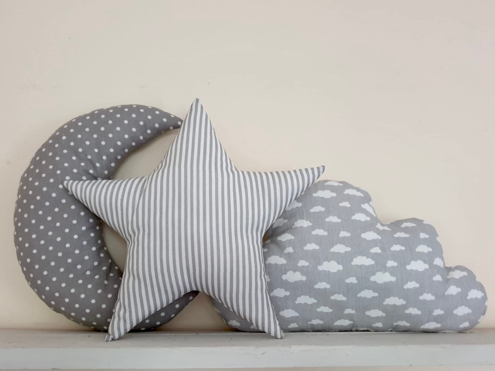 Star Moon Cloud Pillow nursery accessories gender neutral Grey pill...
