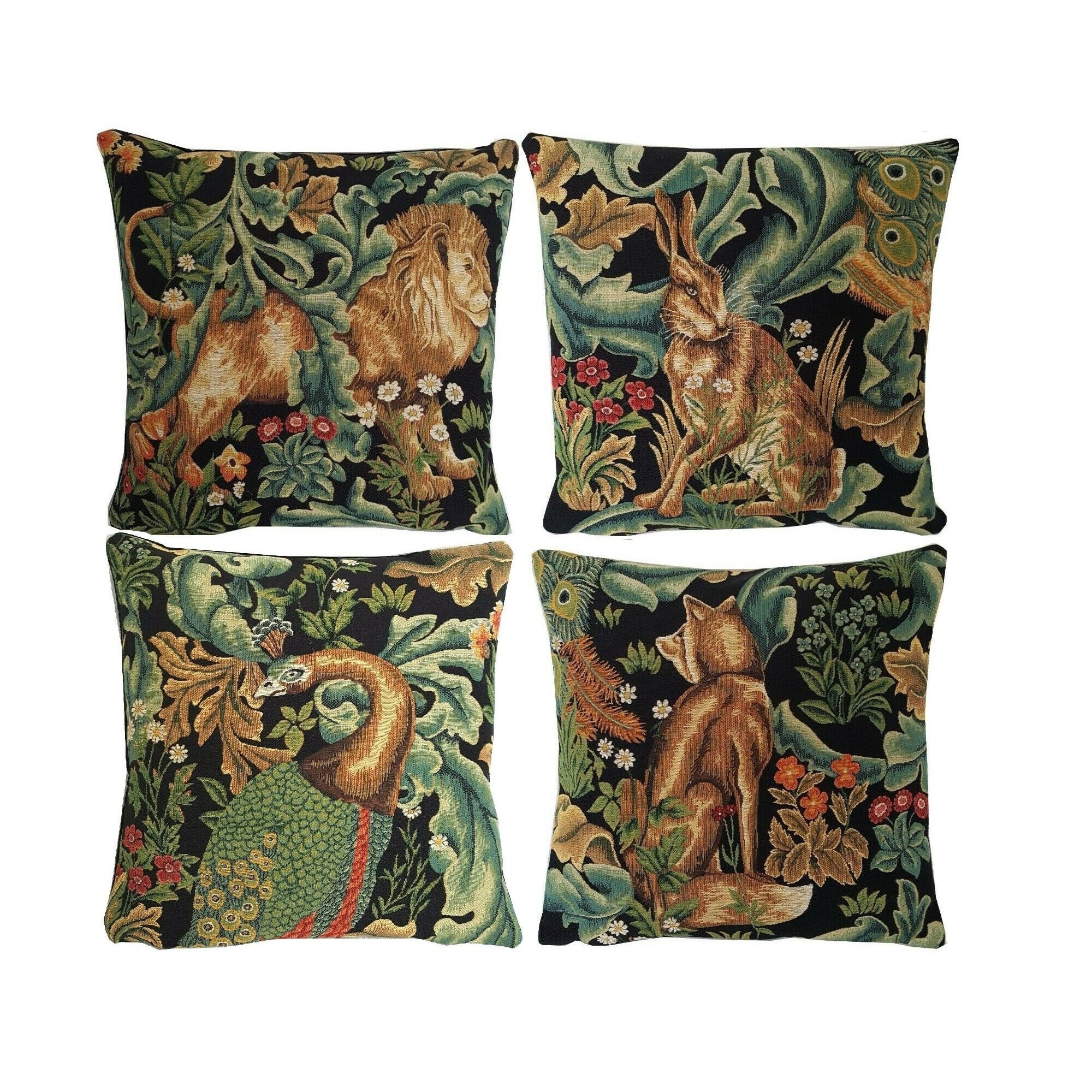 "Set of 4 JACQUARD WOVEN Belgian BELGIUM Tapestry Pillow Cushi...