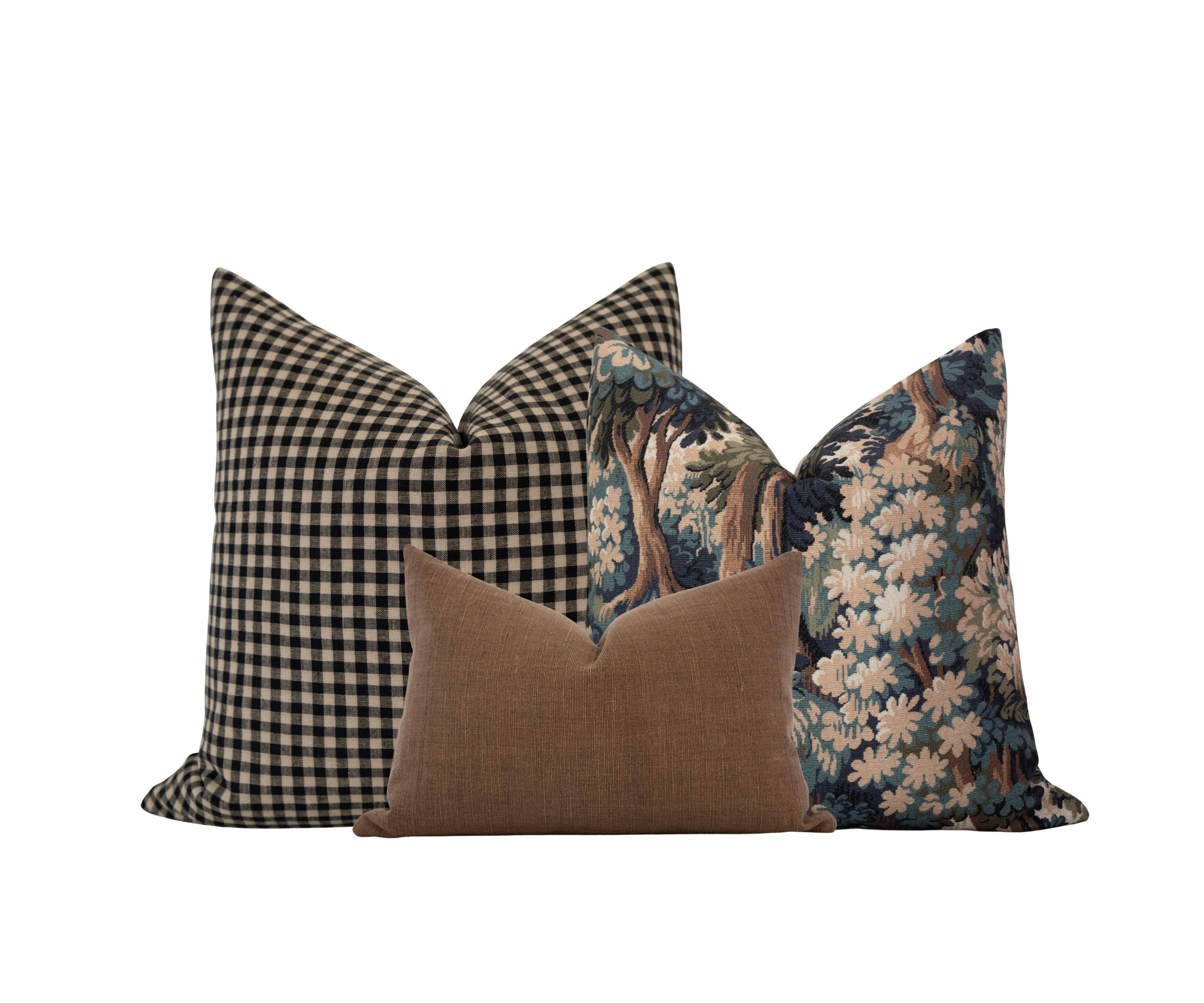 "Brown and Green Pillow Cover Combo Included: 1) 22x22 AXEL Black and Beige Gingham Pillow Cove...