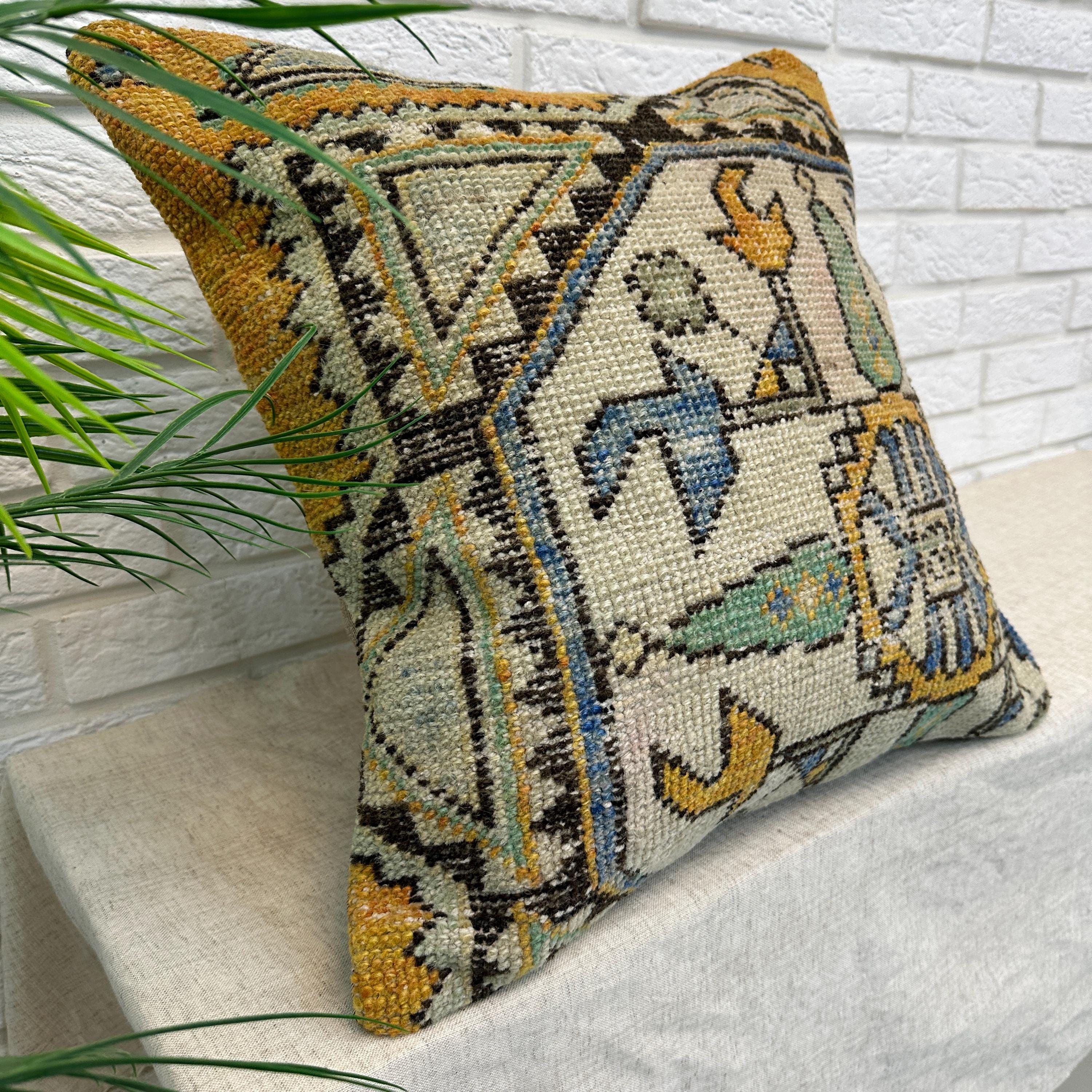20x20 Turkish Rug Pillow Cover, Rug Cushion Case, Decorative Rug Pi...