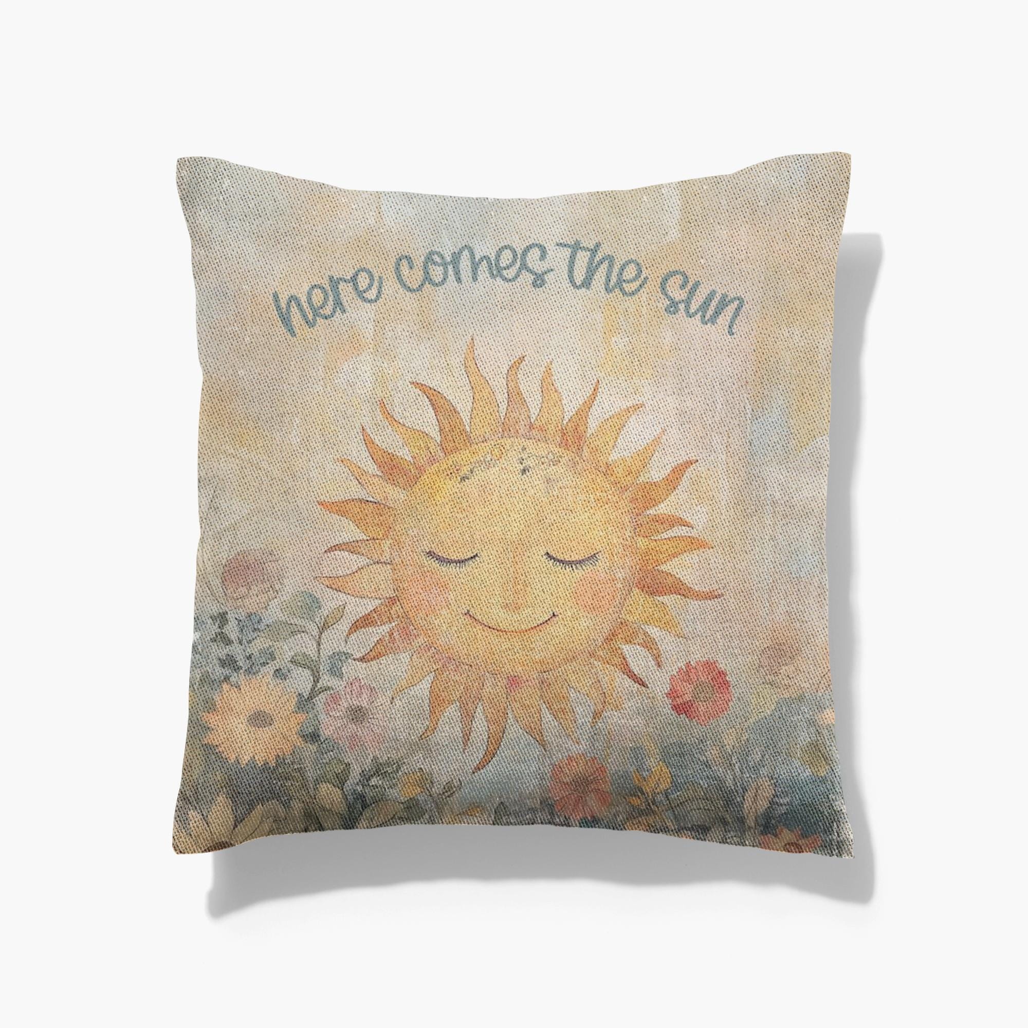 "Enjoy a one-of-a-kind keepsake with our \"Here Comes the Sun\" Timeless Woven Pillow...