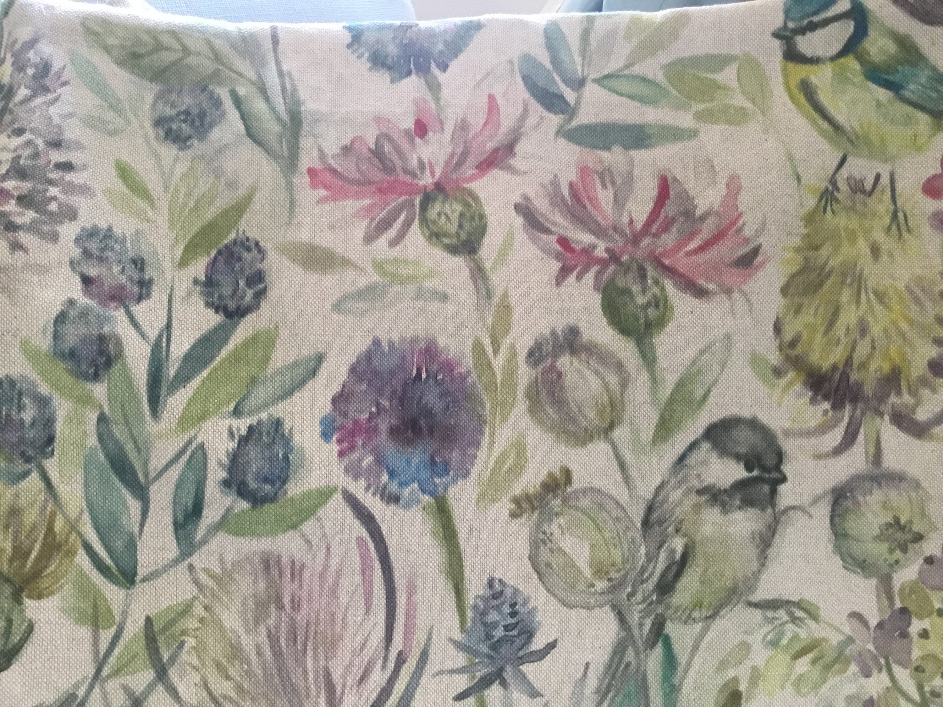 Gorgeous cushion covers made in Morning Chorus fabric by Voyage Maison, depicting a variety of birds...