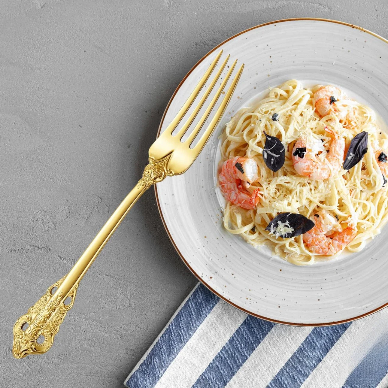 8 inch Vintage Dinner Fork Set 18-10 Stainless Steel Forks Mirror Gold Table Forks Luxury Flatware D...