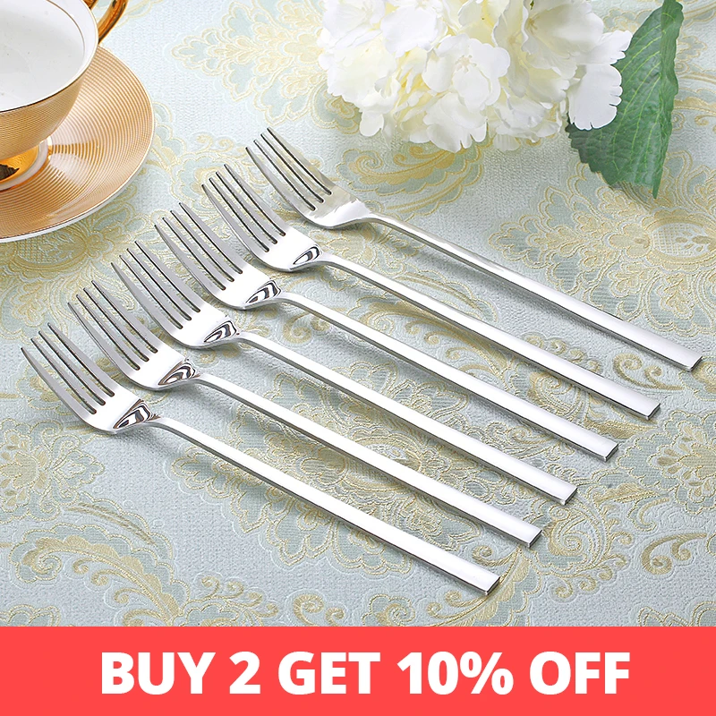 6-10pcs 8.5" Korean Dinner Forks Long Handle Steak Table Spoon Stainless Steel Kitchen Cutlery ...