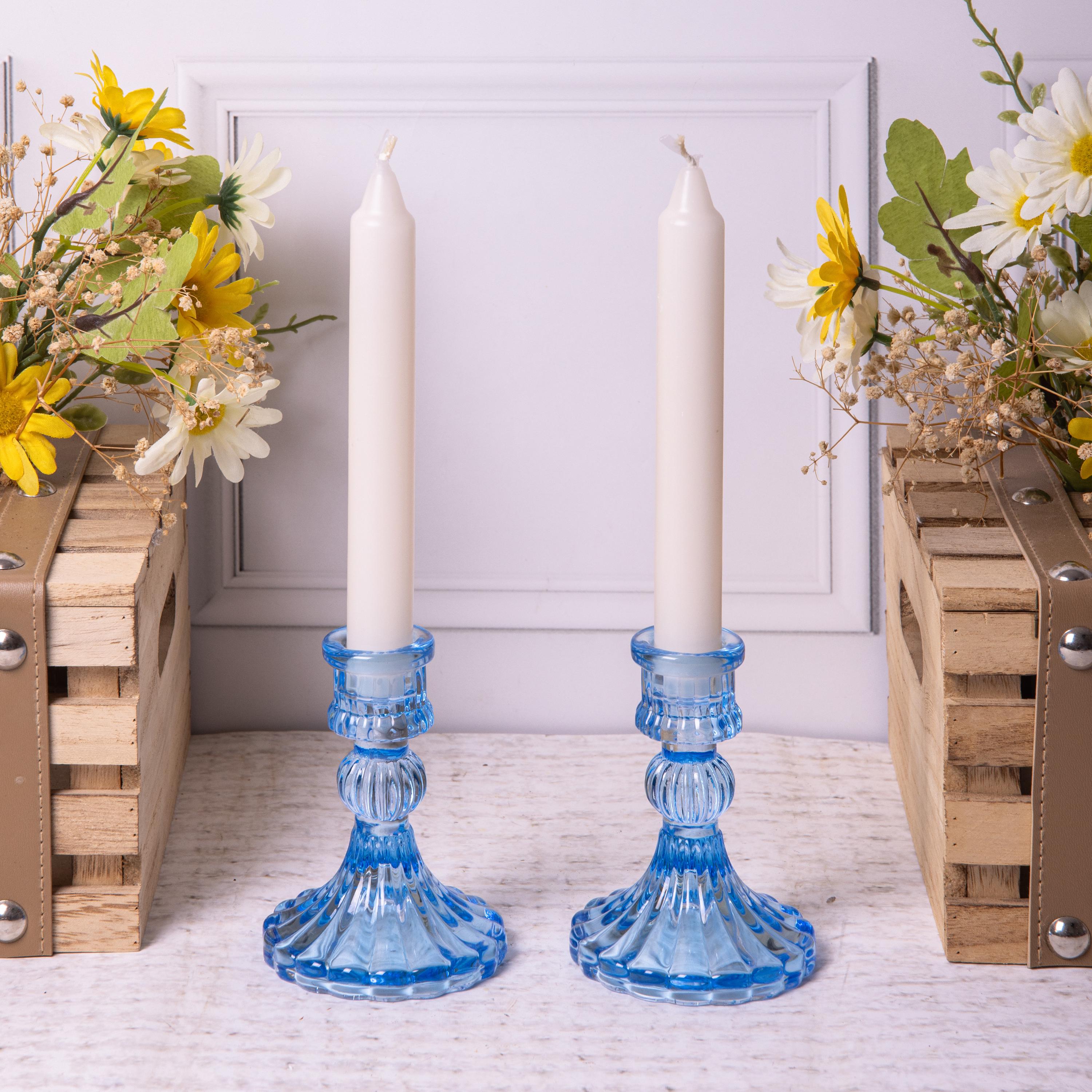 2 x Sky Blue Glass Candlestick Dinner Taper Candle Holders Vintage ...