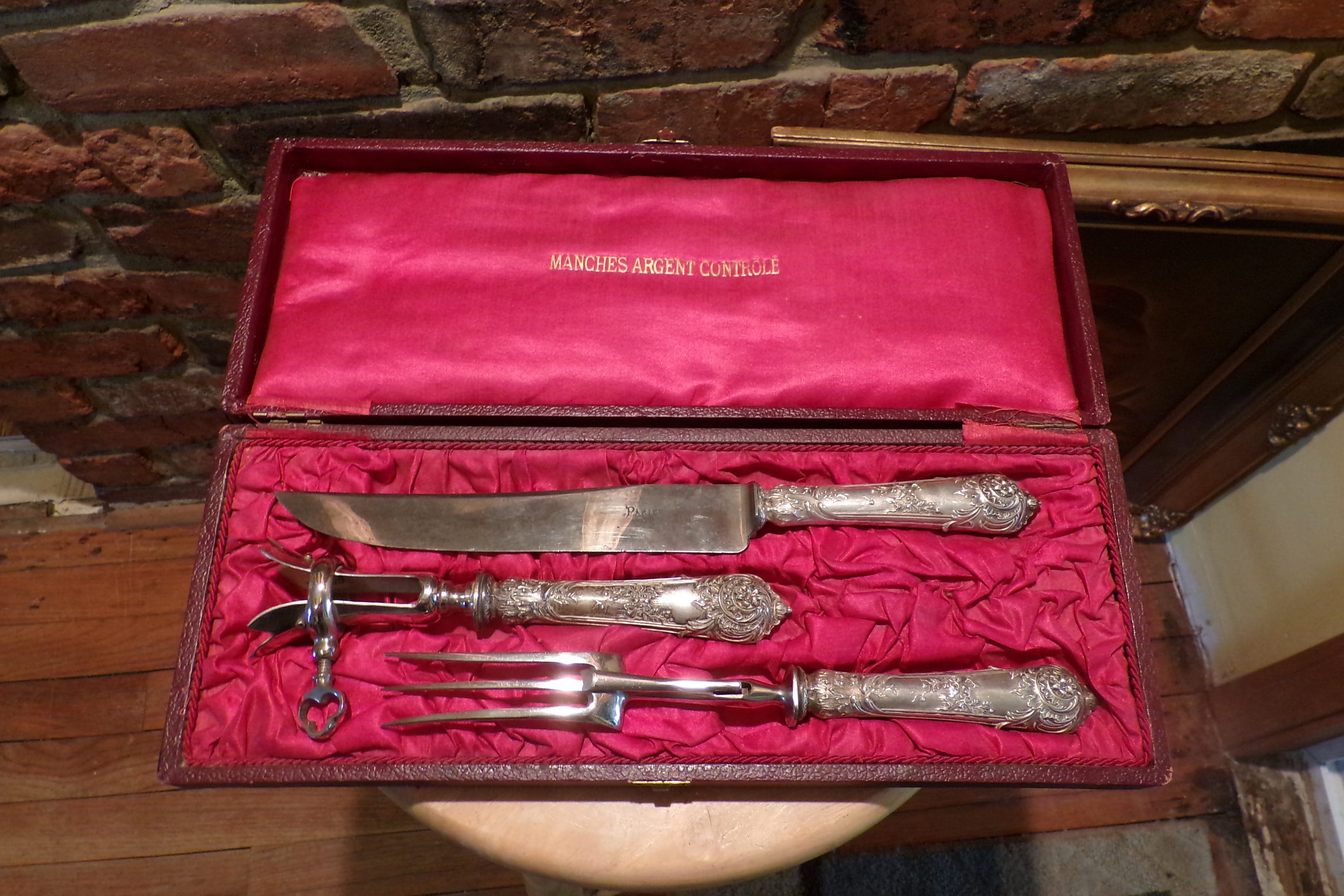Antique French Silver carving set in cases, 1890's to 1900's Antiqu...