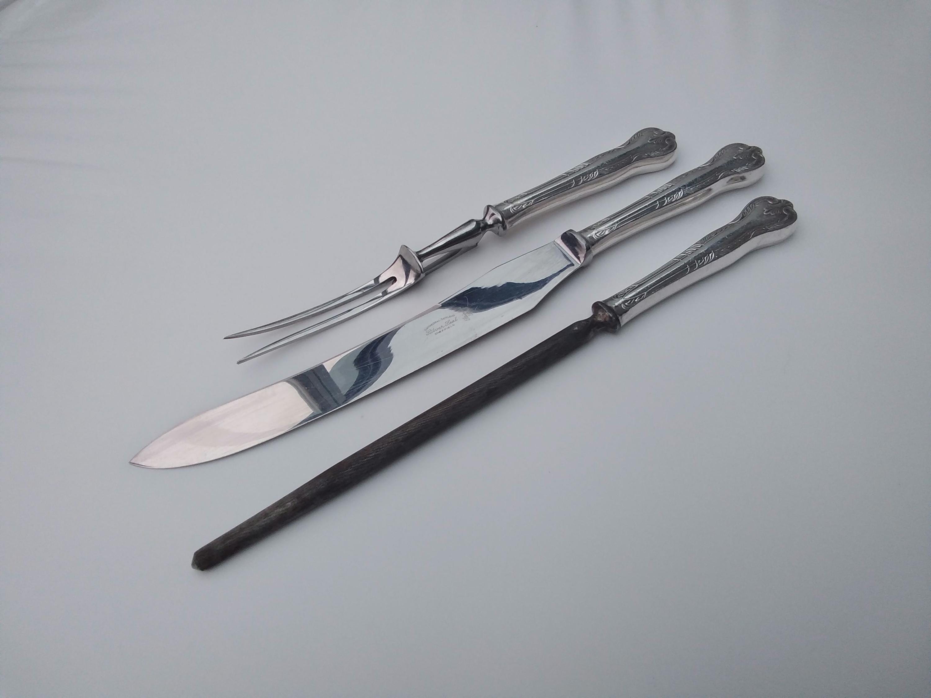 "Antique French .950 Silver Rococo Style 3 Pc Carving Set with Rare Gigot, Antique French carvi...