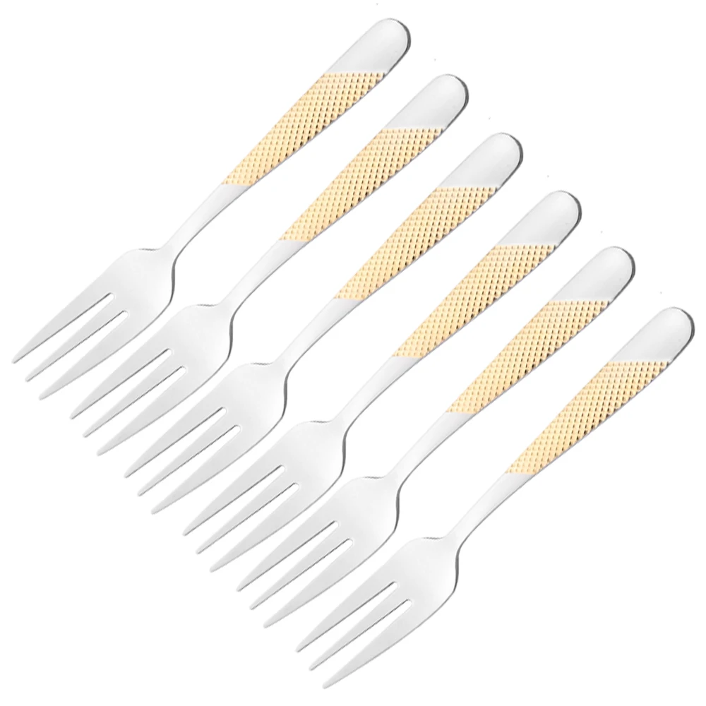 6Pcs Silver Forks Set Tea Cake Snack Fork Dinnerware Cutlery Gold Stainless Steel Tableware Dessert ...