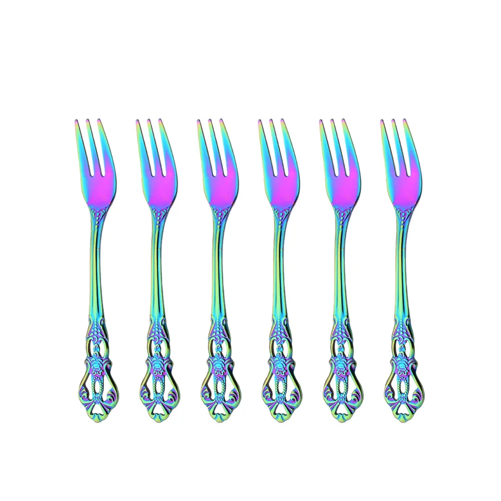 6Pcs Cake Forks Stainless Steel Dessert Fork Colorful Tea Forks Rai...