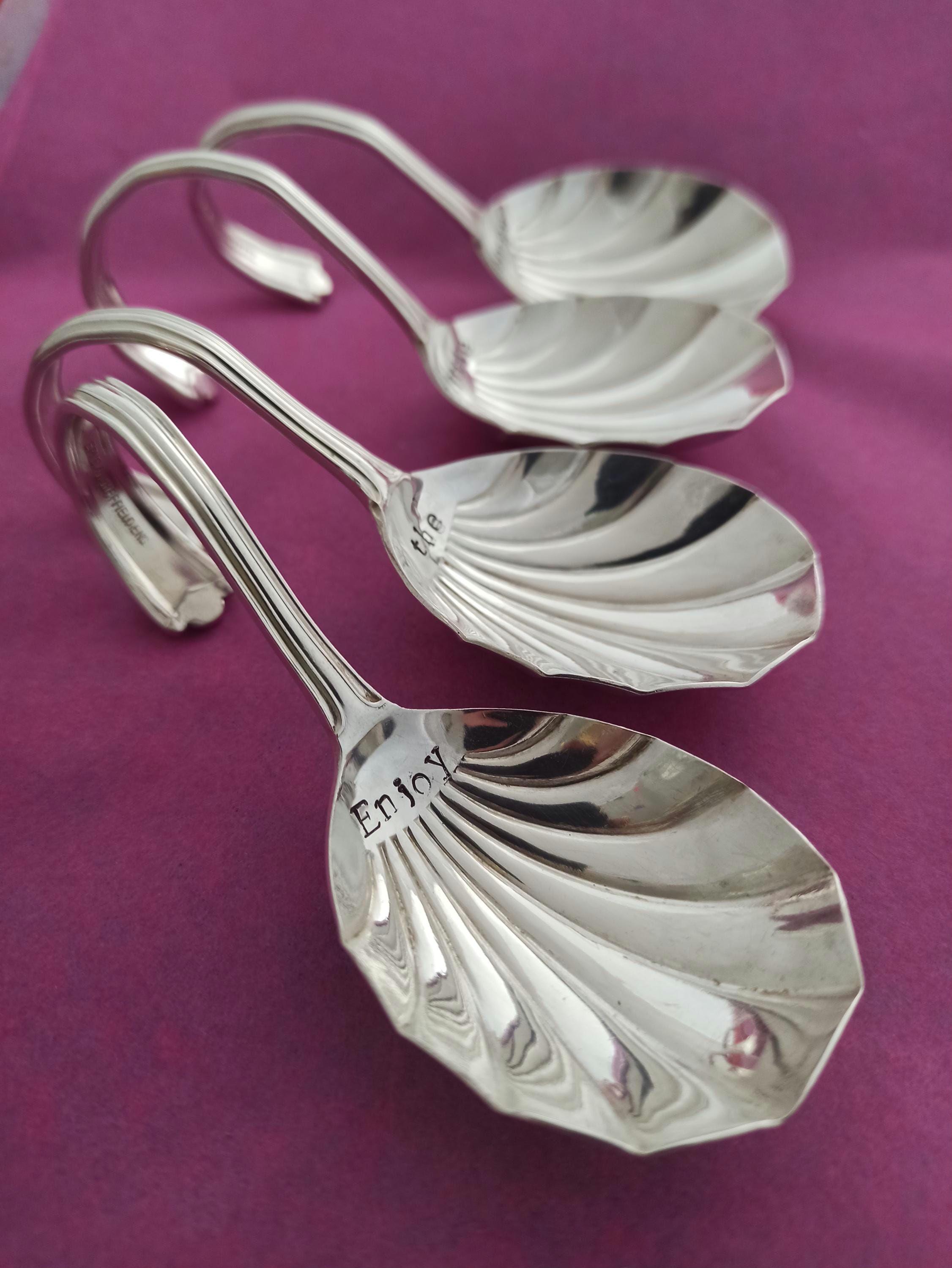 Hand crafted and upcycled from vintage silver plated scalloped spoons. These unique and dainty serve...