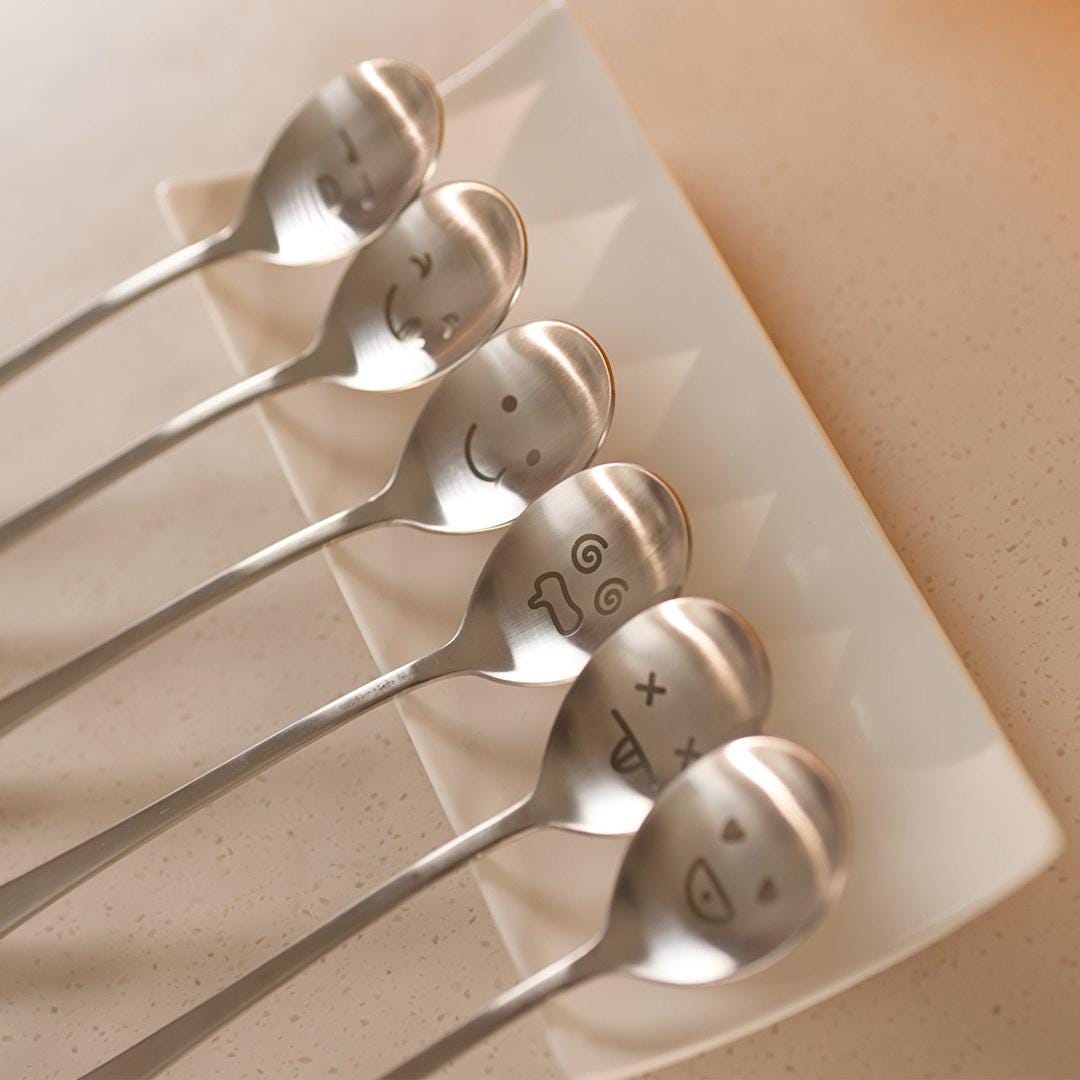 Add a joyful touch to your meals with this 6-piece stainless-steel spoon set featuring Bapmoo's sign...
