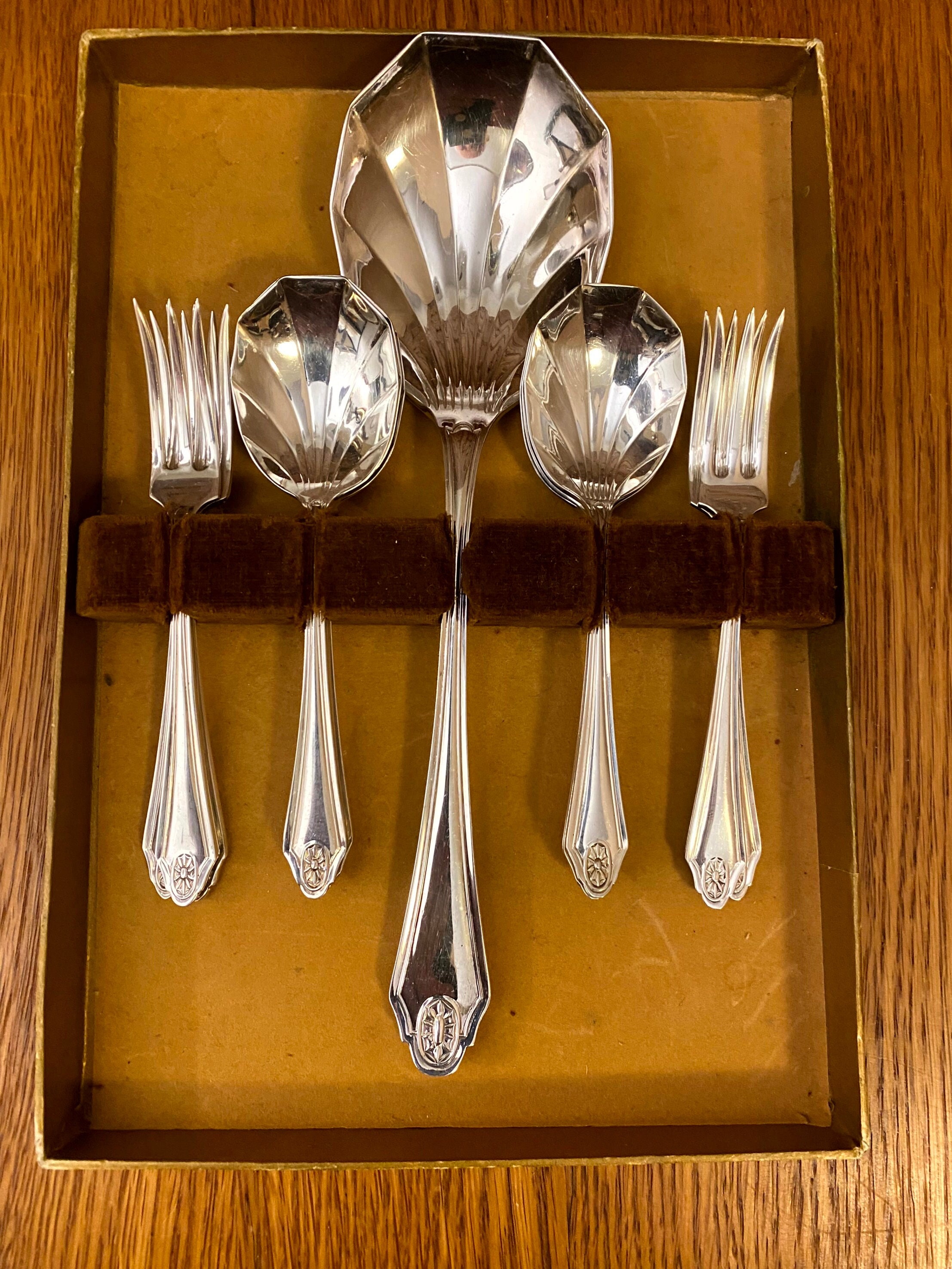 1930s art deco boxed set of berry spoons or dessert spoons.